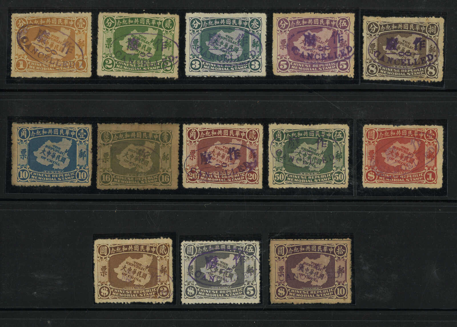 1912 Unadopted “Map of China” Republic commemorative issues complete set, all bearing oval cancellation seal. It was supposed to be the first commemorative issue of ROC but was withdrawn due to the objection of Yuan Shikai. As