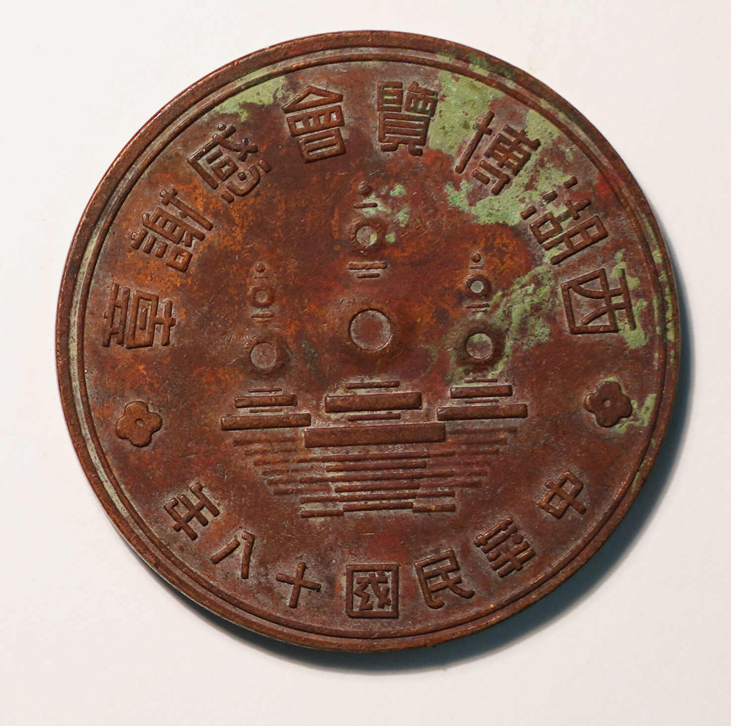 1929 West Lake Exposition commemorative medal. (diameter 5 cm).