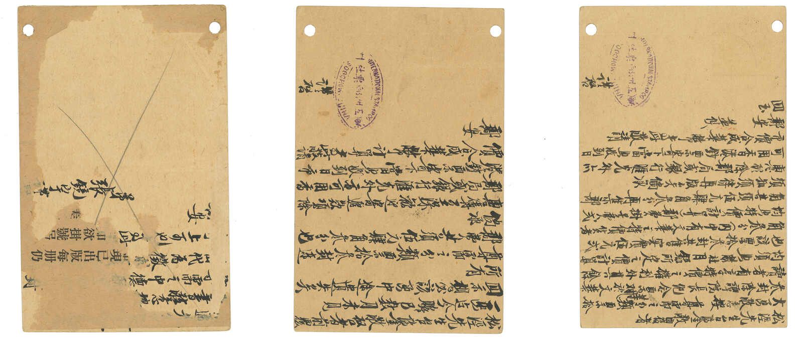 1940至1942年一組三件孫像第一版1角5分郵資片(韓目47),分別自昆明、閩侯及上海實寄美國。甚晚之使用例子,出自雲南更是少見。(Image 1)