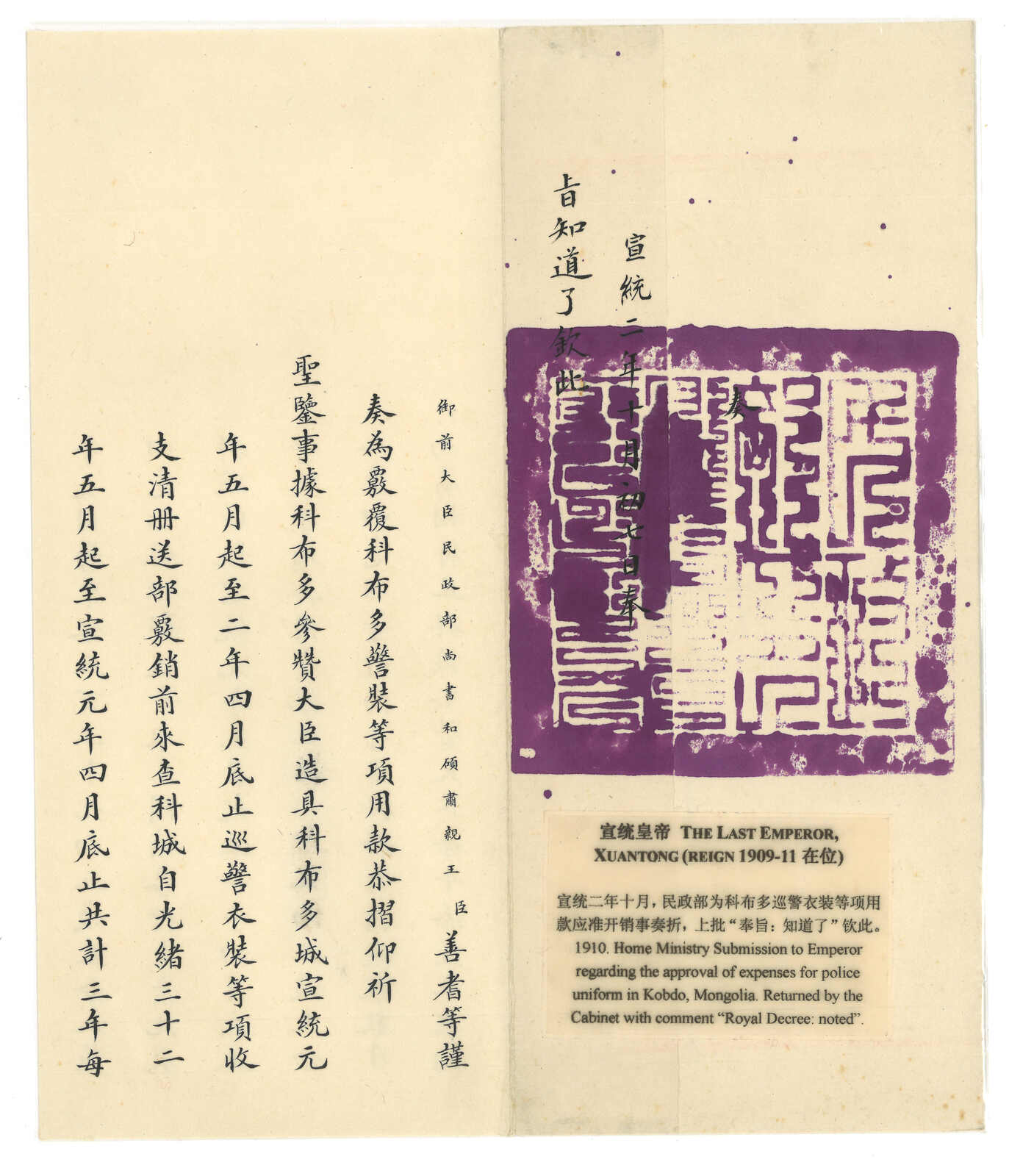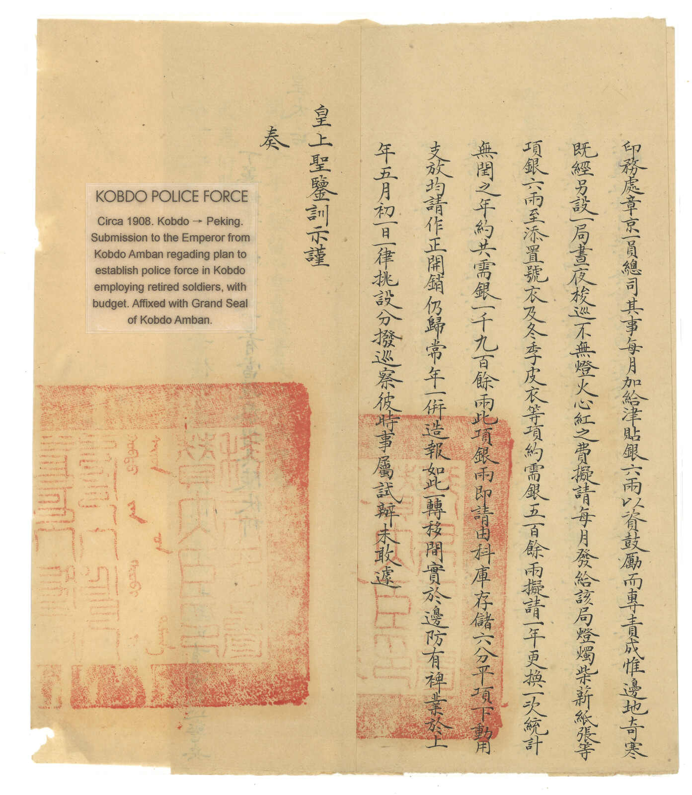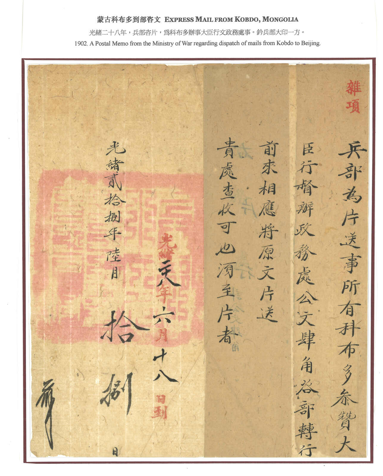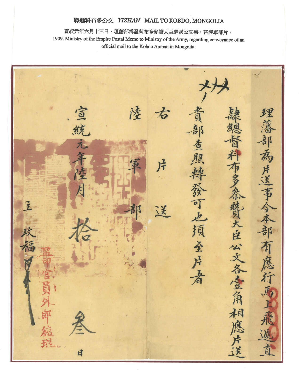 1900年代一組四件往來科布多大臣之蒙古郵驛咨片及硃批奏折。(Image 1)