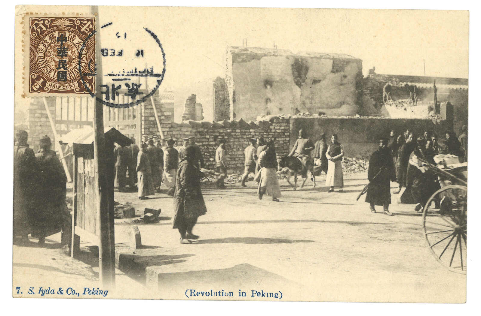 1913.2 革命時期北京市況之圖片明信片,貼宋字蟠龍半分,銷北京日戳。(Image 1)