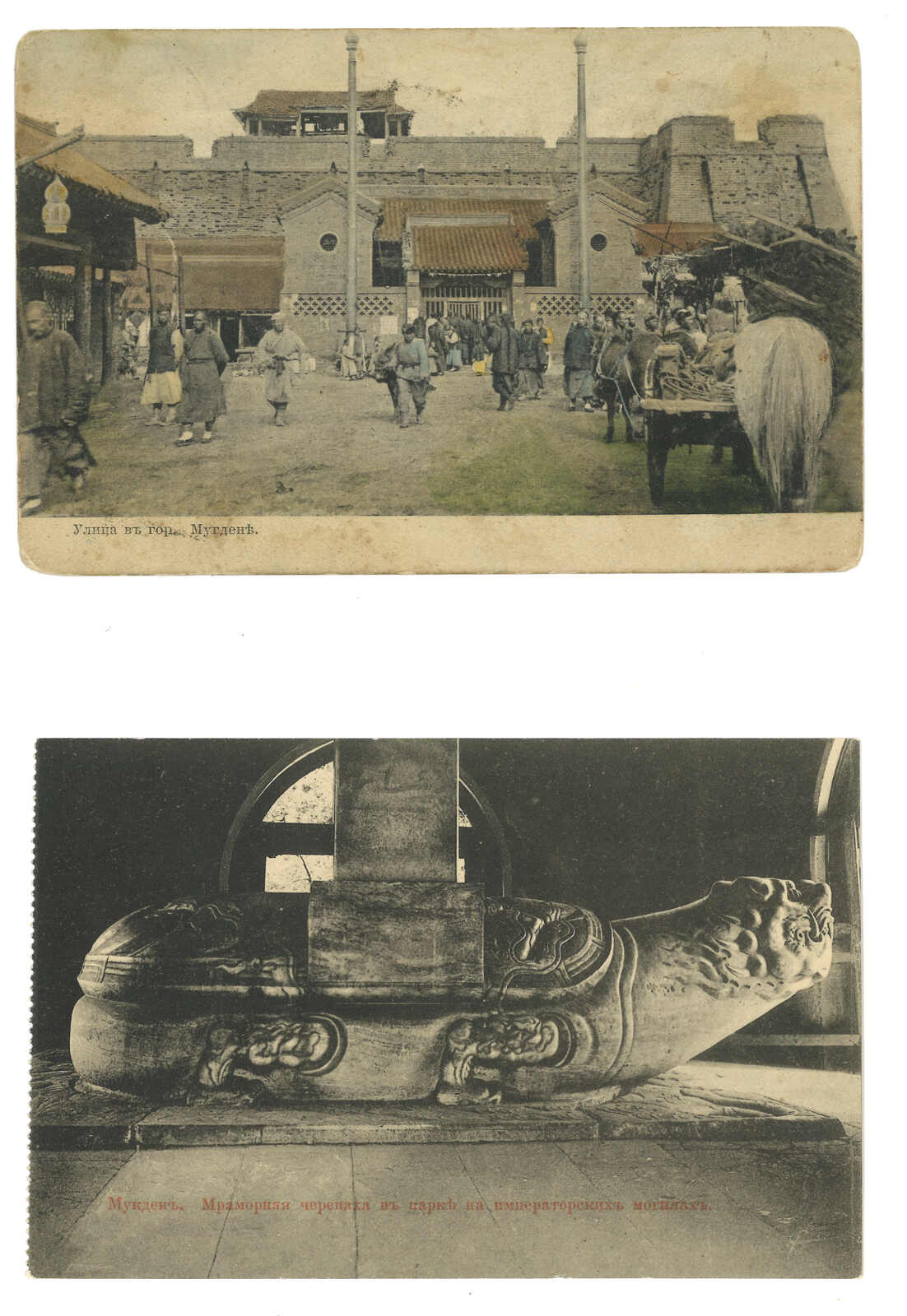 A pair Moukden view PPC, one commercially used and one unused.