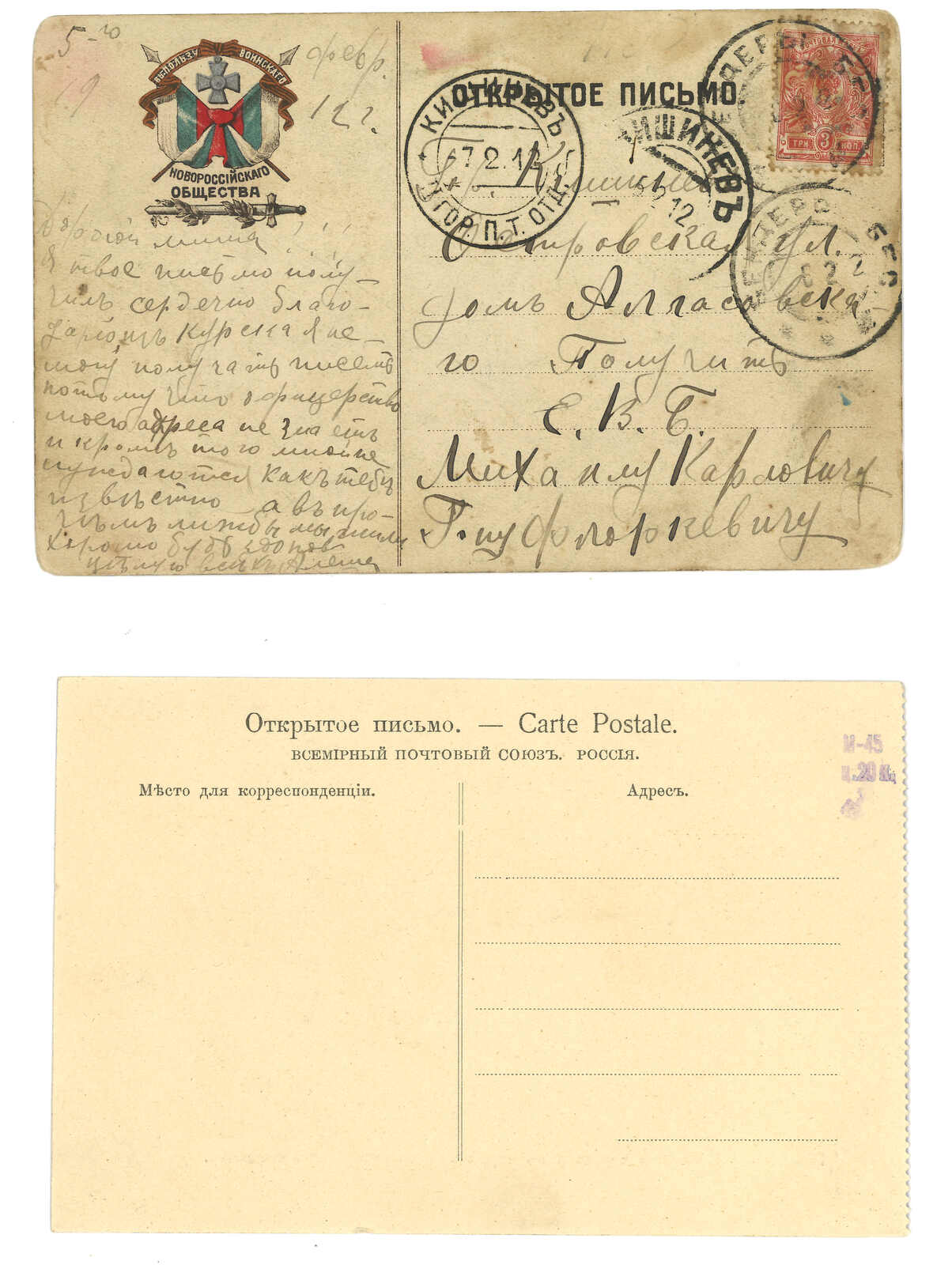 and censor label. Arrived Tihwa (26 Jan). Cover opened out for display.