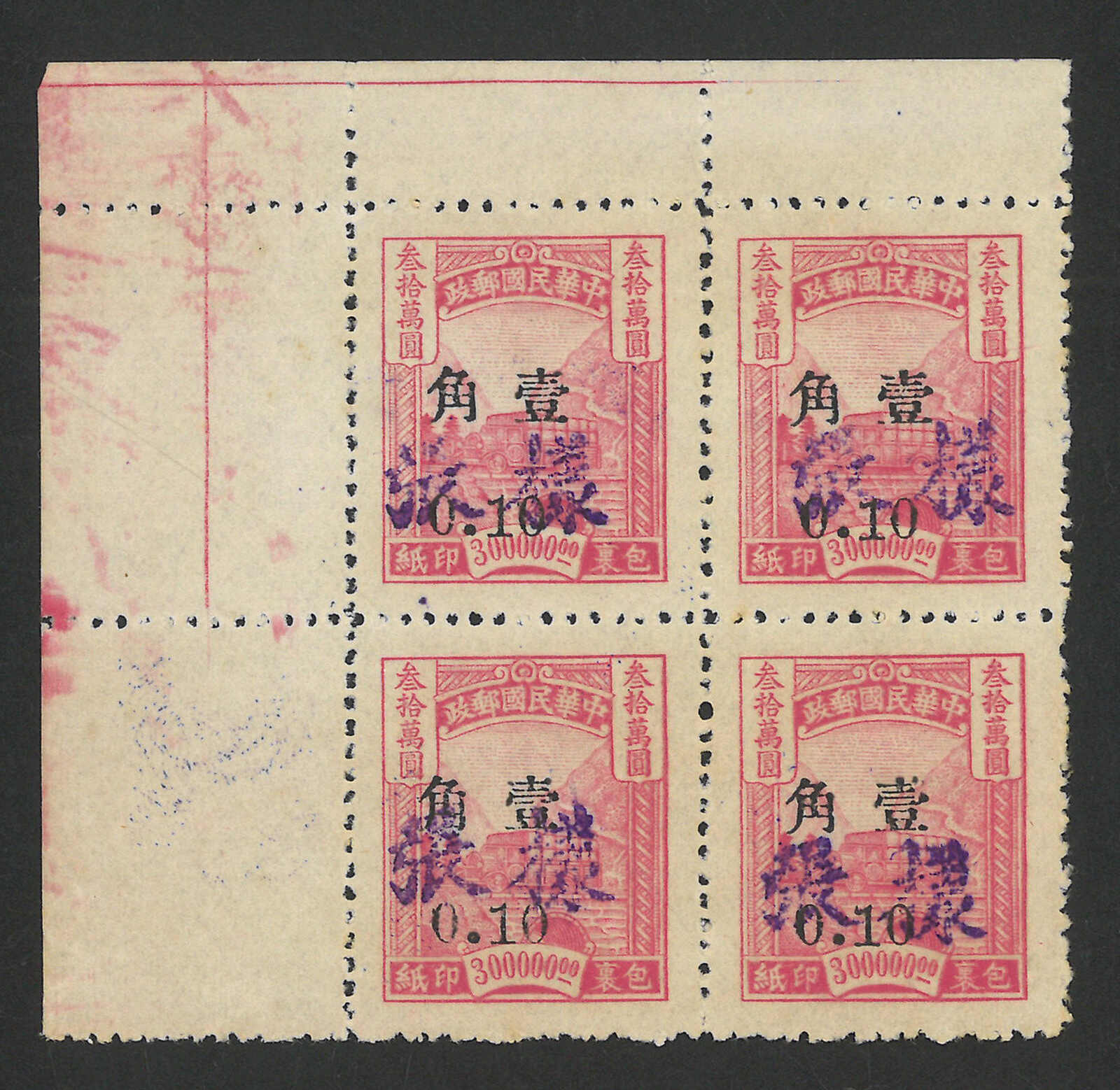 1949年湖南改值銀圓包裹票樣票四方連新全(陳目SP1-7), 無貼。銀圓票之難得珍品。(Image 1)