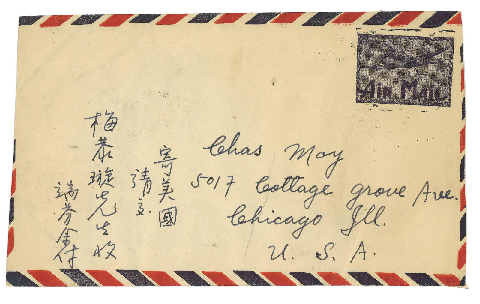 1949.5.14 廣州寄美國。航空封,鈐“POSTAGE PAID / CANTON