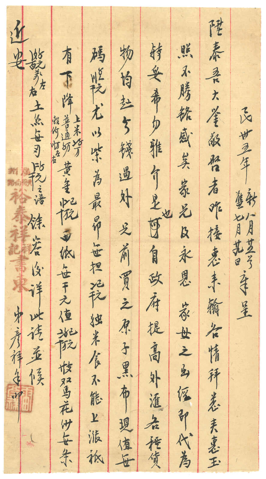 1949.6.10 沙河寄上海,鈐八角形“國內郵資已付 / 沙河”戳記及沙河(番禺)三格點線日戳。9.19抵上海。帶污點。甚長之中轉時間,應為內戰之故。(Image 1)