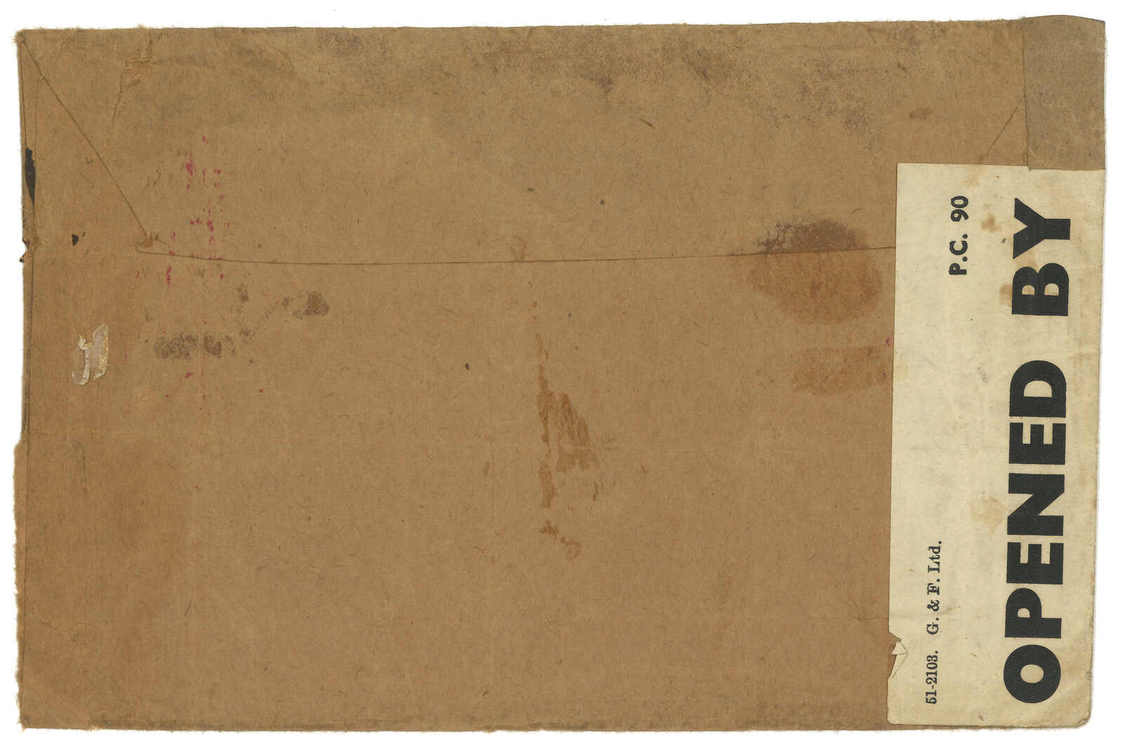 1940年代二戰戰俘檢查封,由英軍戰俘J W Hugo自日本寄蘇格蘭,鈐日文檢查章及檢查員名字章。(Image 1) (Image 2)