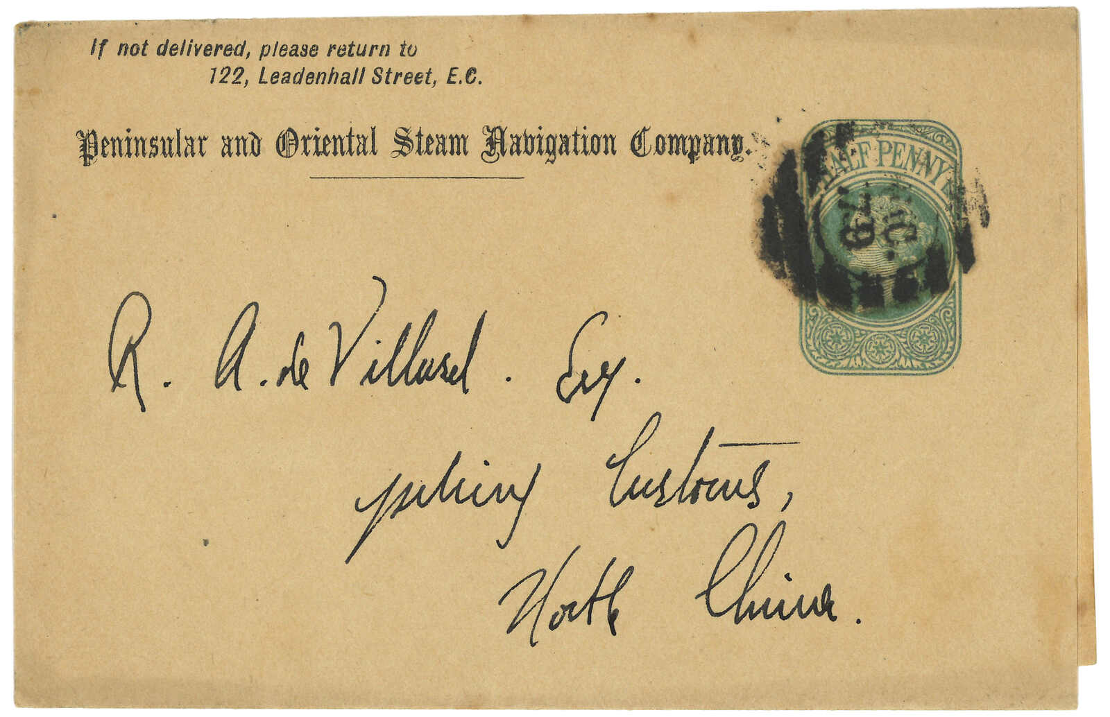 125 cover image1897 (15 Oct) German Eagle 10pf PSC to Adolphus Diercking, Customs Chungking, redirected to Shanghai, tied by Bromberg cds. Transit Hong Kong (16 Nov). Arrived Shanghai LPO (23 Nov).