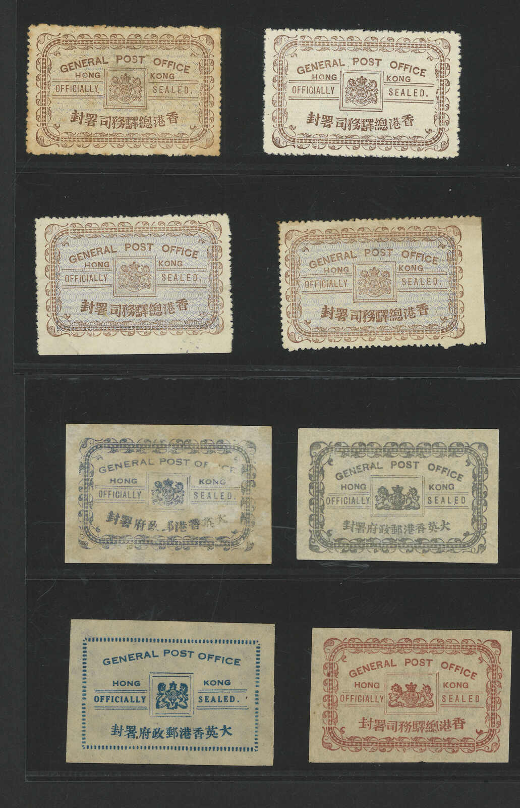 263 imageA group of 8 General Offiice Hong Kong official sealed label. Showing different types and shades.