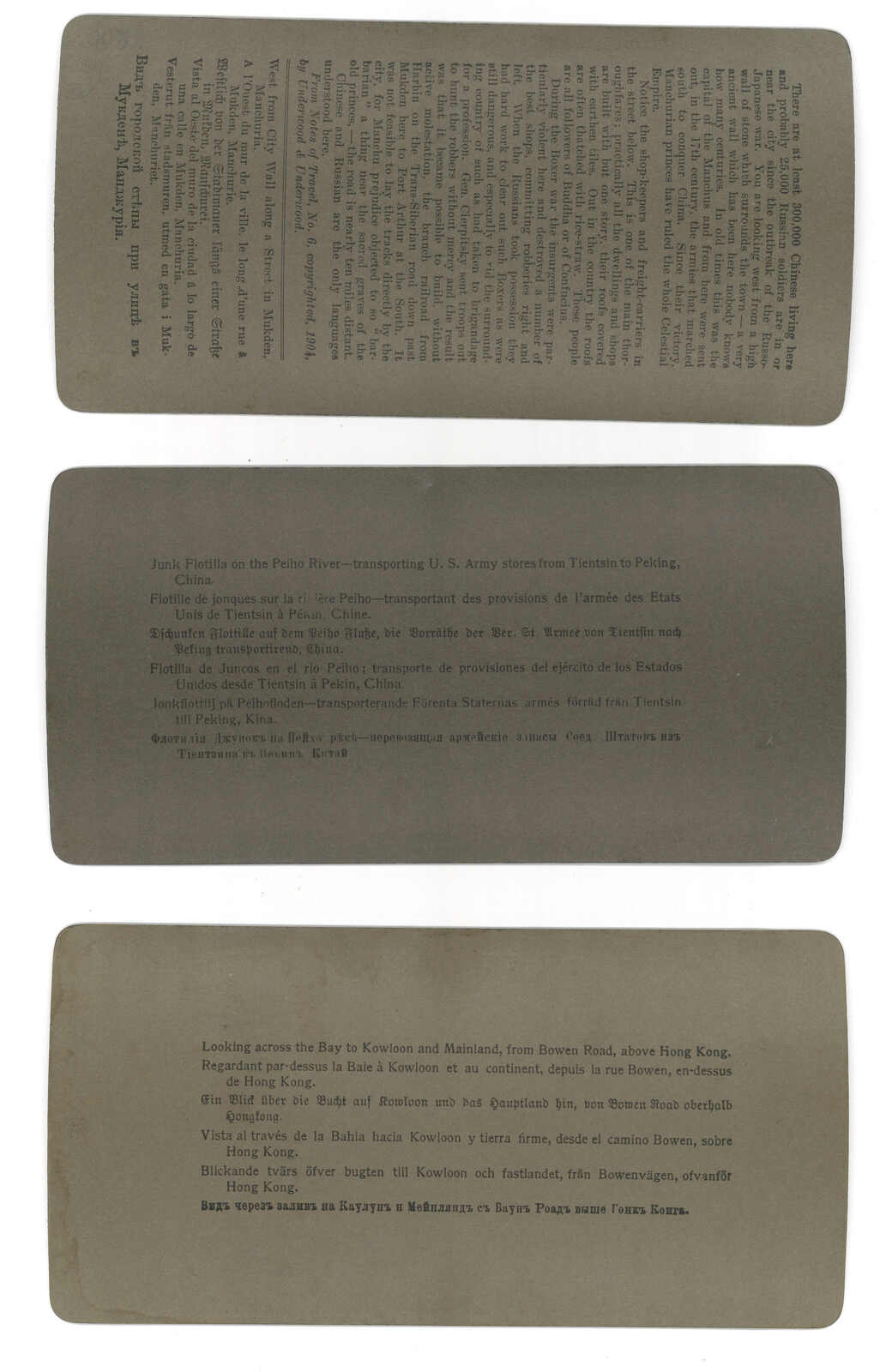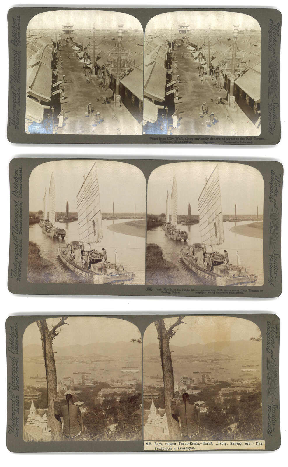 617 imageA group of 3 Peking and Hong Kong view stereocards produced by Underwood & Underwood Publisher