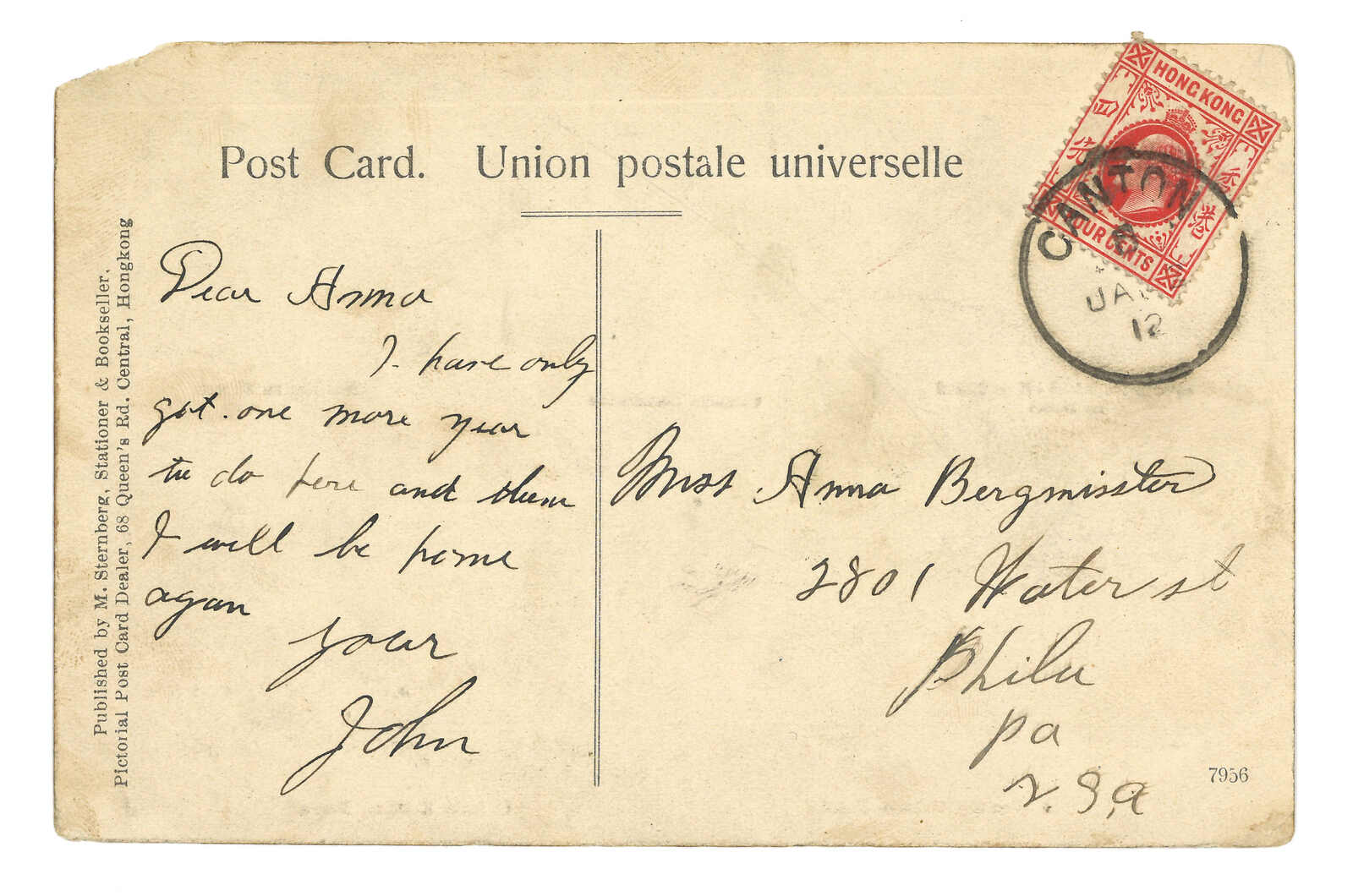 1874 cover image1912 Canton (Jan) to USA. Picture postcard, f.w. Canton BPO Webb type Eii index B cds.