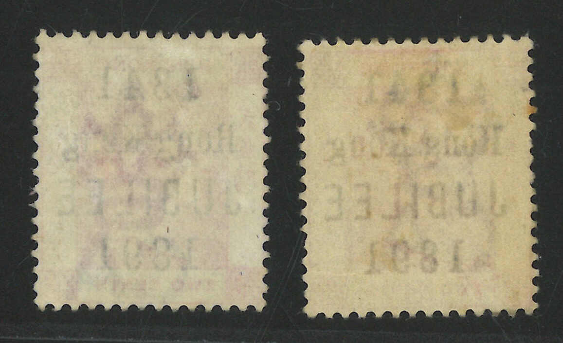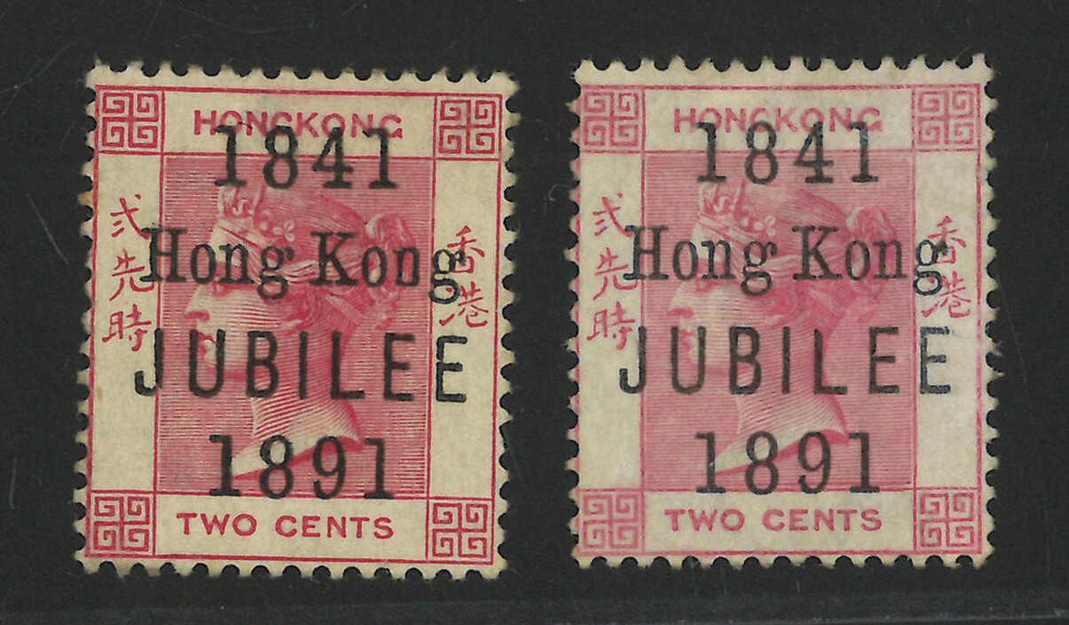 1891年香港開埠五十週年新,共2枚(楊目C1),無貼/輕貼。(Image 1) (Image 2)