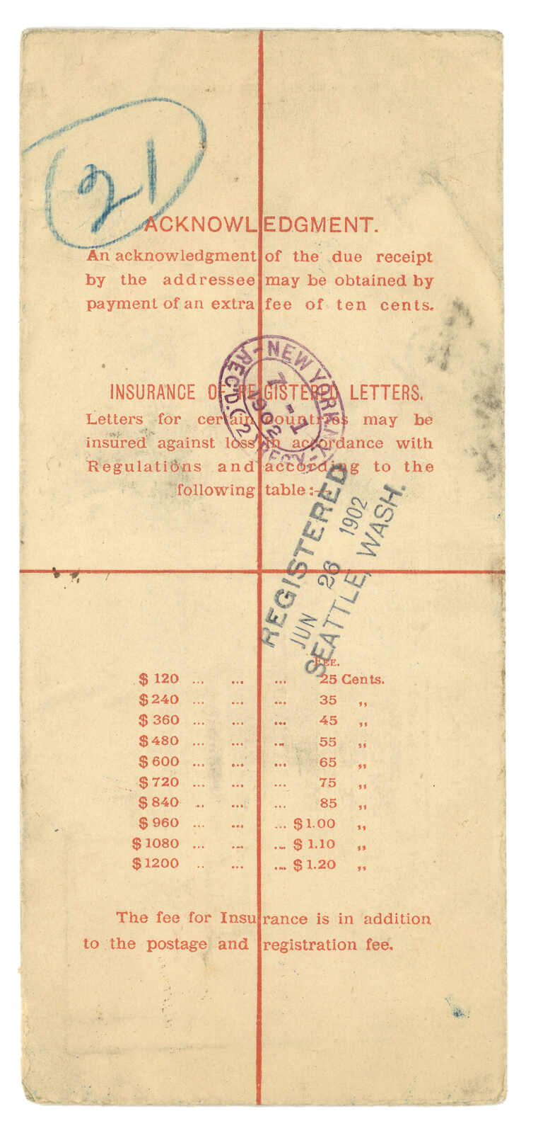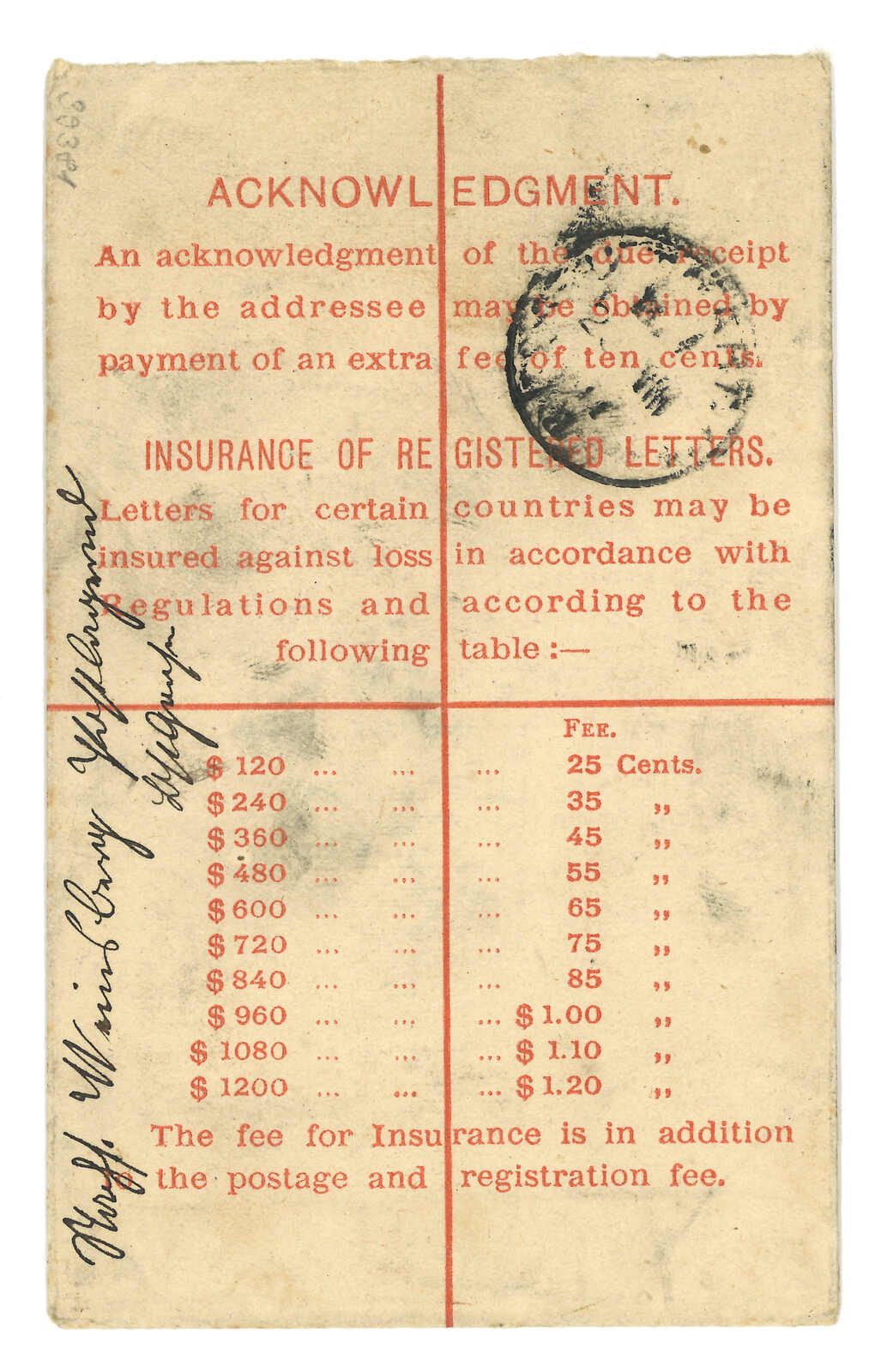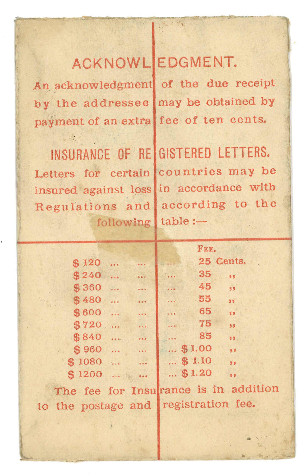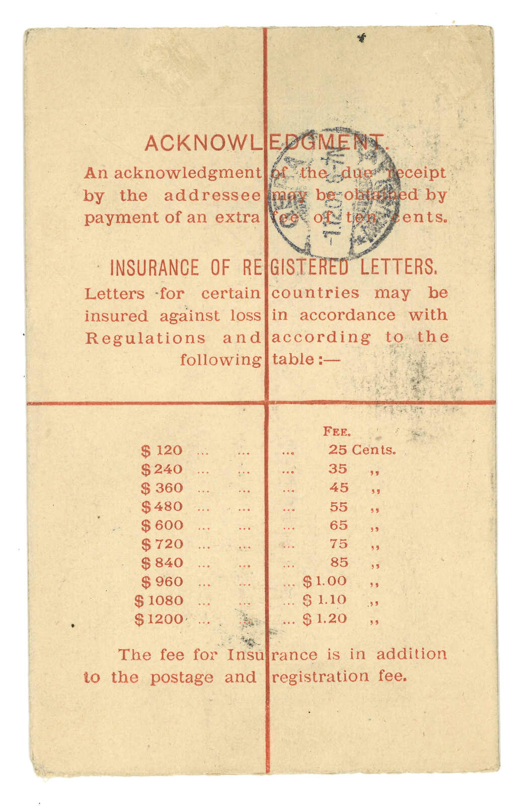 2031 cover image1895 Natal to (1 Mar) to the Chief Engineer onboard, SS Lao Sok, Scottish Oriental Steamship Co, f.w. Natal 2-1/2d. Transit London (23 Mar). Arrived Hong Kong (3 May). Nice incoming cover from South Africa. Example of Scottish Oriental Steamship Co. is also unusual in Hong Kong.