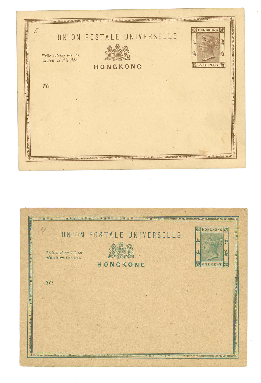 2037 cover imageHong Kong QV stationery cards and cover in a group of 4, including 1c and 3c. One used.