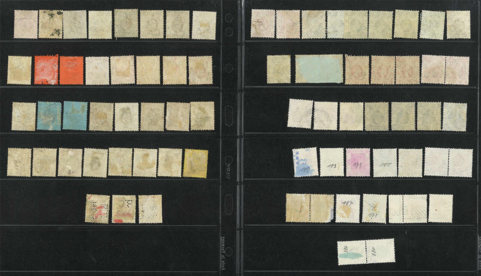 一組約74枚香港愛德華七世、佐治五世、佐治六世及伊麗莎伯二世新舊票,舊票銷不同香港或商埠日戳。 較佳者包括愛德華七世2元、3元、佐治六世1角5分帶“伍分”破版變異票等。請預覽。(Image 1)