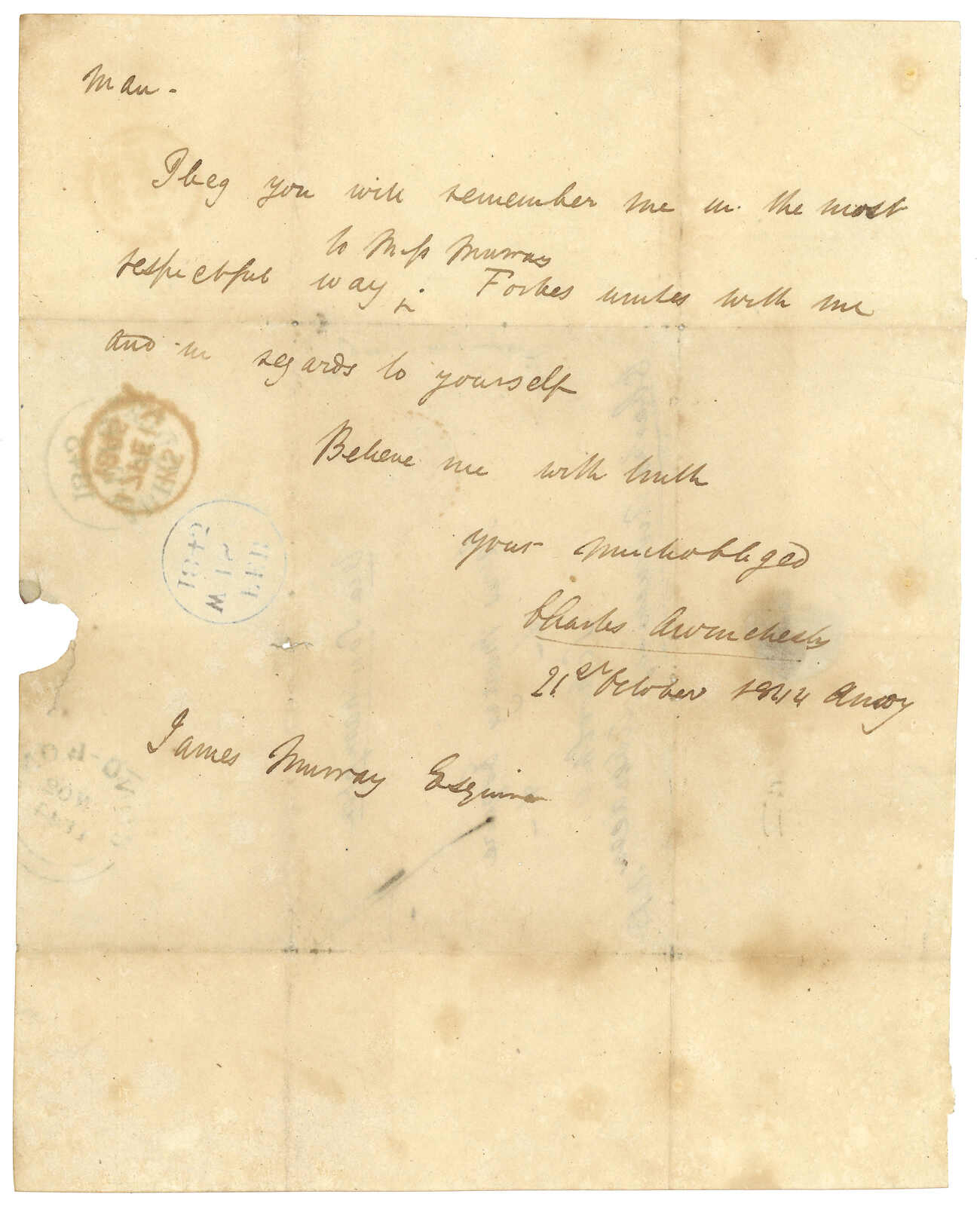 cds (14 Apr) and oval forwarding agent seal. Very little correspondence from Amoy before the arrival of the AMOY PAID cds have survived. Webb recorded only one dated 15 Mar 1846 from the consulate to Scotland.
