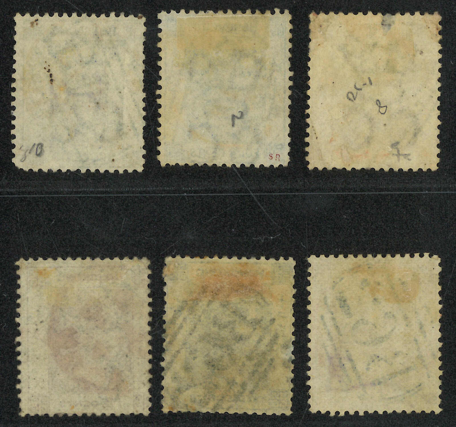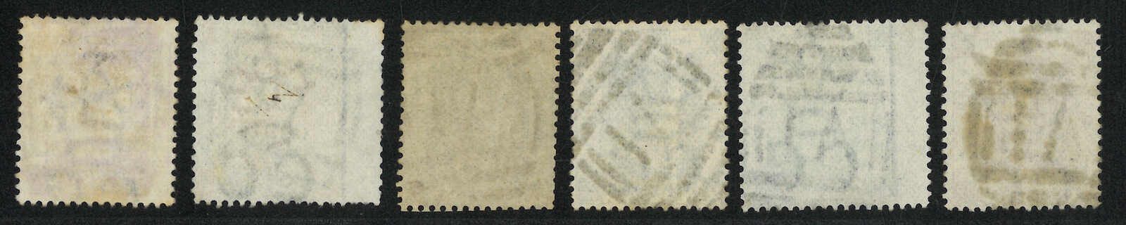一組六枚香港維多利亞女皇像舊票,銷黑色A1殺手戳。(Image 1)