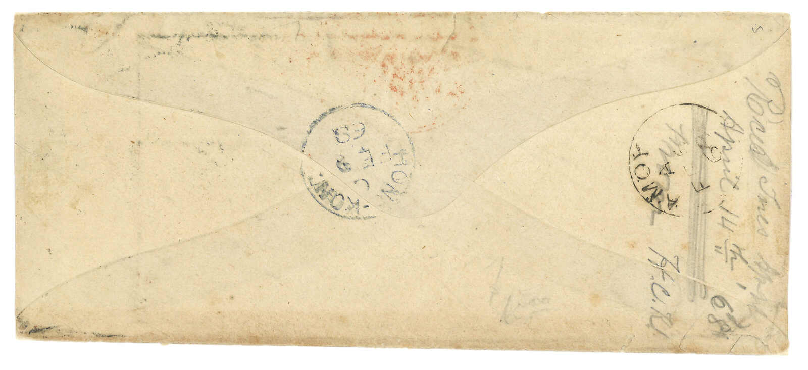 廈門寄蘇格蘭。郵簡,寫有“via Marseilles”及“1/6”郵資,鈐Webb A型“AMOY PAID”廈門已付紅色日戳。4.1經香港。5.13抵愛丁堡。Webb記錄中,蓋有此戳之無貼票封僅有八件,而這件日期比Webb的記錄(1862年3月26日)更晚。 2024年11月艾華秋拍中,一件1861年4月26日自廈門寄加的斯Jose Matia,蓋有相同A型日戳之郵簡以港幣5萬2千元落鎚(拍品號2538)。(Image 1)