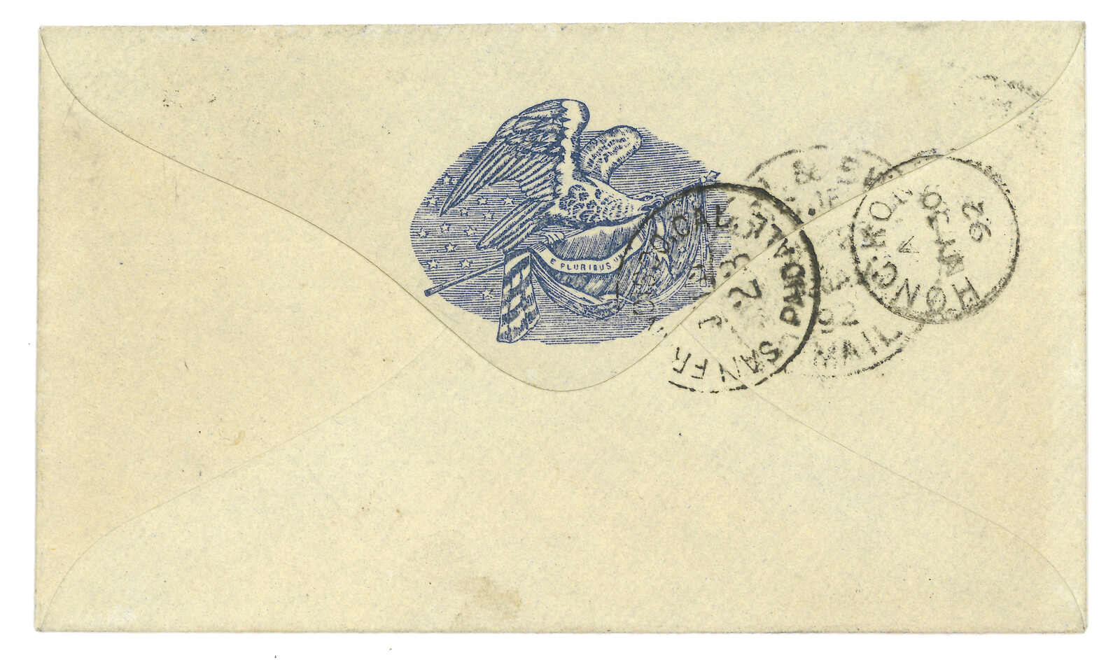 美國駐廈門領事館寄美國,貼香港維多利亞女皇像5仙x2,合10仙萬國郵盟郵資,銷廈門英局Webb E型日戳。5.30經香港,6.23經三藩市。(Image 1)