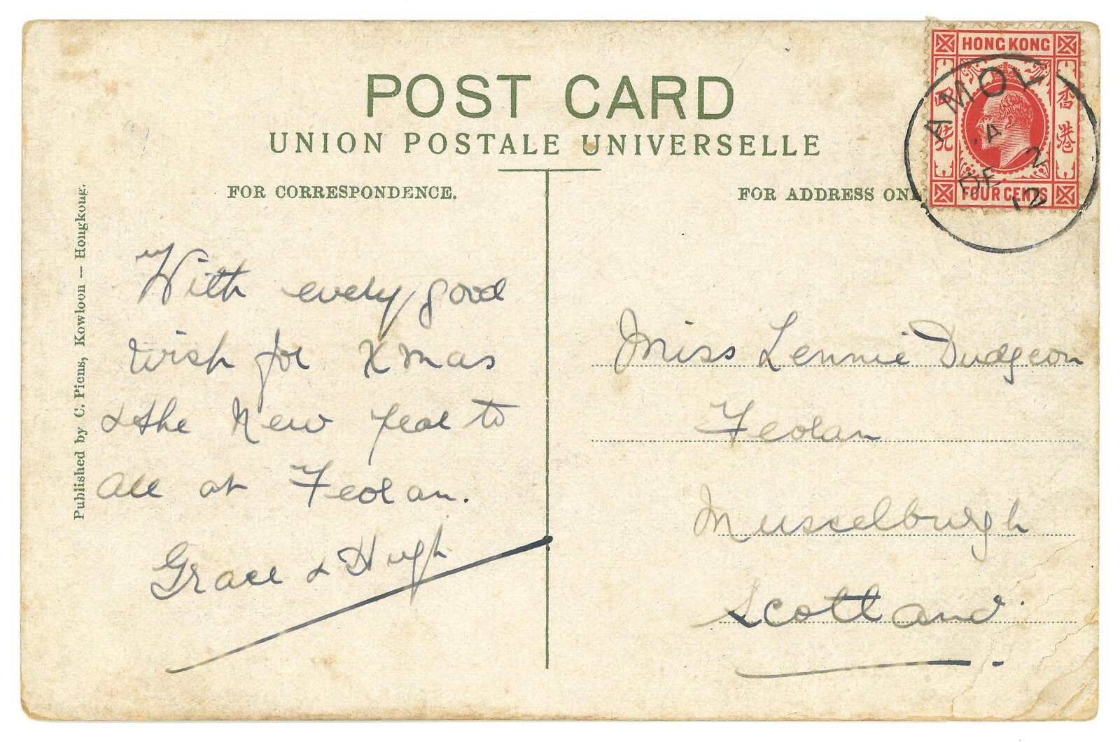 1912.12.2 廈門寄蘇格蘭。圖片明信片,貼香港愛德華七世4仙,銷廈門英局Webb Ji型(A字)日戳。(Image 1)