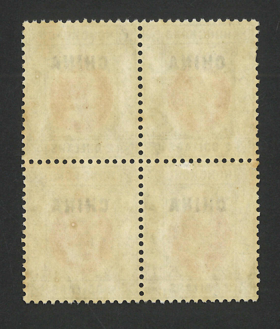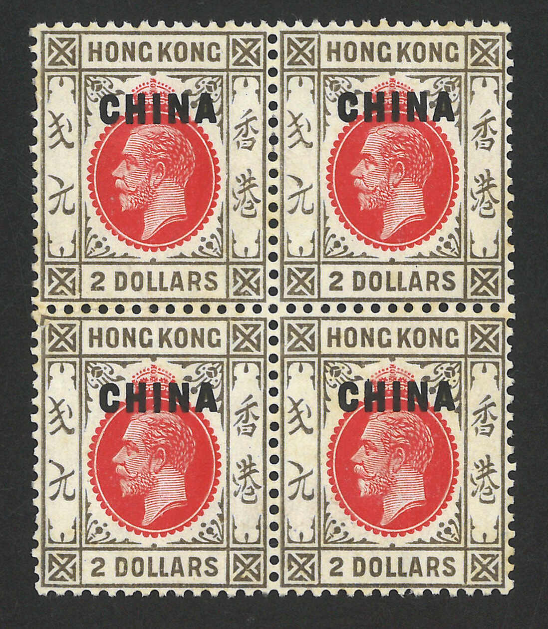 1917至1921年香港佐治五世加蓋CHINA第一組複正CA水印2元四方連新(楊目BP13),輕貼上品。(Image 1)