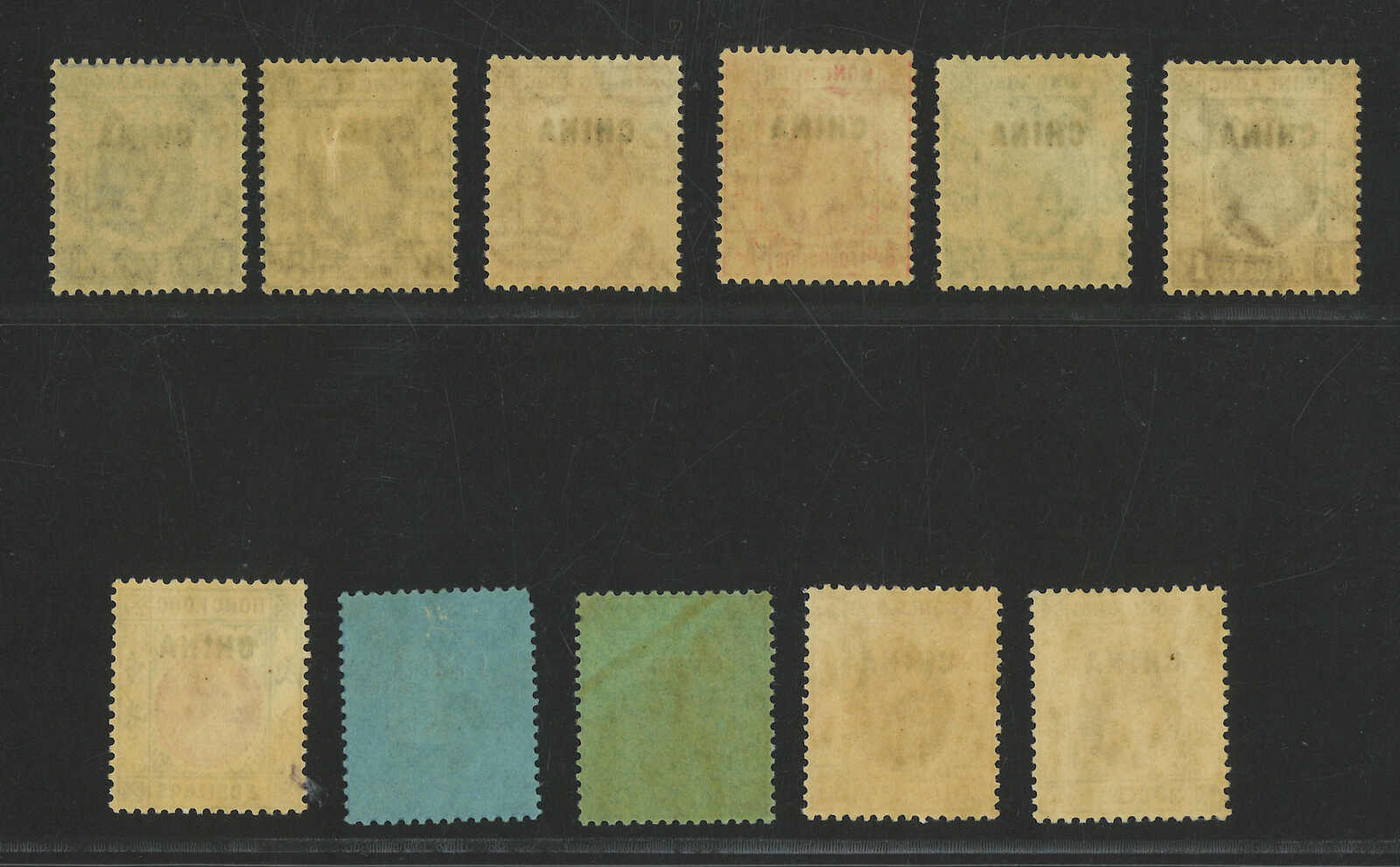 1922至1927年香港佐治五世加蓋CHINA第二組複草CA水印1仙至1元連票新,均帶版號1(楊目BP17-26),背貼。(Image 1)