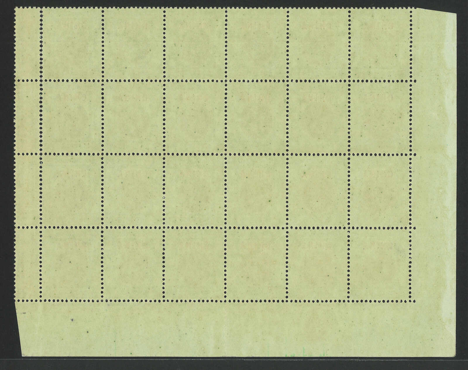 1912至1921年香港佐治五世加蓋CHINA 第一組複正CA水印50仙二十四方連新,