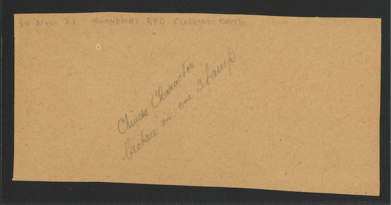 1917至1927年香港佐治五世加蓋CHINA第二組複草CA水印4仙十二方連,當中一枚帶爛“港”字變異(楊目BP19),銷上海英局掛號日戳。少見之大方連變異例子。(Image 1)