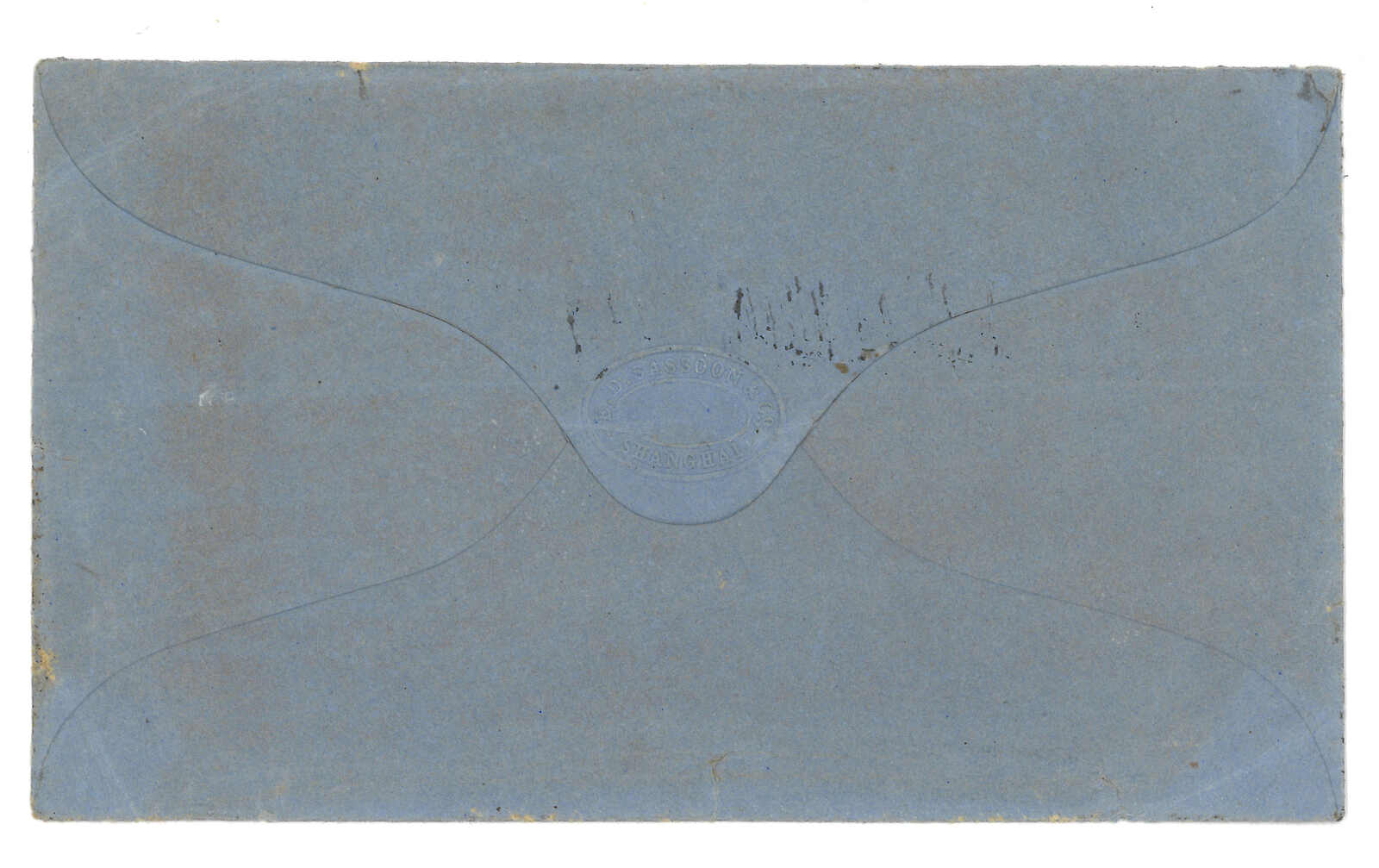 1852 cover image1849 (March) A double forwarders’ opened out cover sent from Hong Kong to New York, addressed to “Mrs. Annie Ward, care of James Herring Esq., Howard house, Corner of Broadway & Howard St.,, New York”, an arrival c.d.s. “NEW-YORK MAY 14/ 2 (cts)”. On the reverse, cancelled by a red oval forwarder mark in HK “FORWARDED BY RAWLE DRINKER & CO. / HONG KONG”, and a blue oval forwarder mark from London “LEMUEL GODDARD / LONDON”, together with a small pencil mark of “1849. According to the US Philatelic Classics Society references and Simpson-Alexander’s listings, the device of circular NEW-YORK / 2 (cts) C.D.S. was introduced from 1851 and remained in use into early 1860s. The date of May 14 matched with the bi-monthly itinerary of Cunard Line in May 1851. Based on this, the use of the above New York 2 cts C.D.S. is in the first year’s usage.(Image 1)