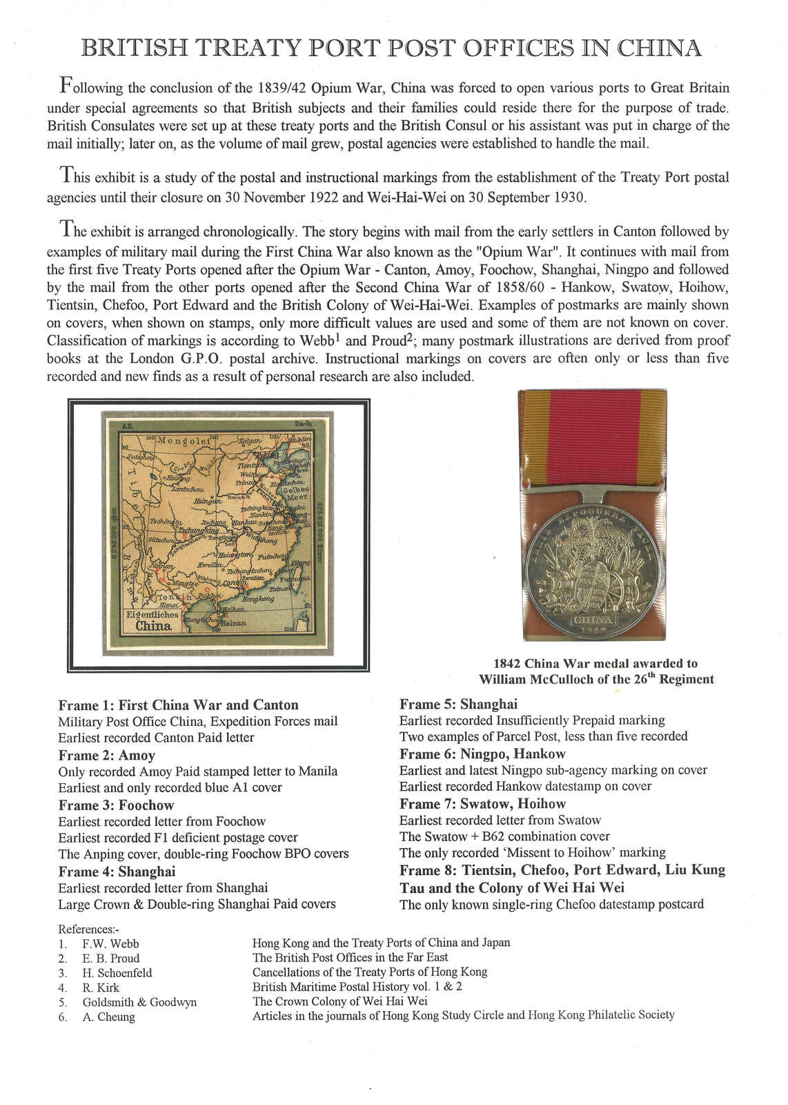 1842年第一次中國戰役勳章,授予第二十六團William McCulloch。中國戰役勳章本由印度總督1842年10月頒 發予東印度公司軍隊。但隨後於1843年,維多利亞女皇下令向所有參與第一次鴉片戰爭之英國陸軍及海軍成員 頒予無勳扣版本。此章由著名雕刻師William Wyon設計,不少經典英國錢幣出自其手筆。(Image 1)