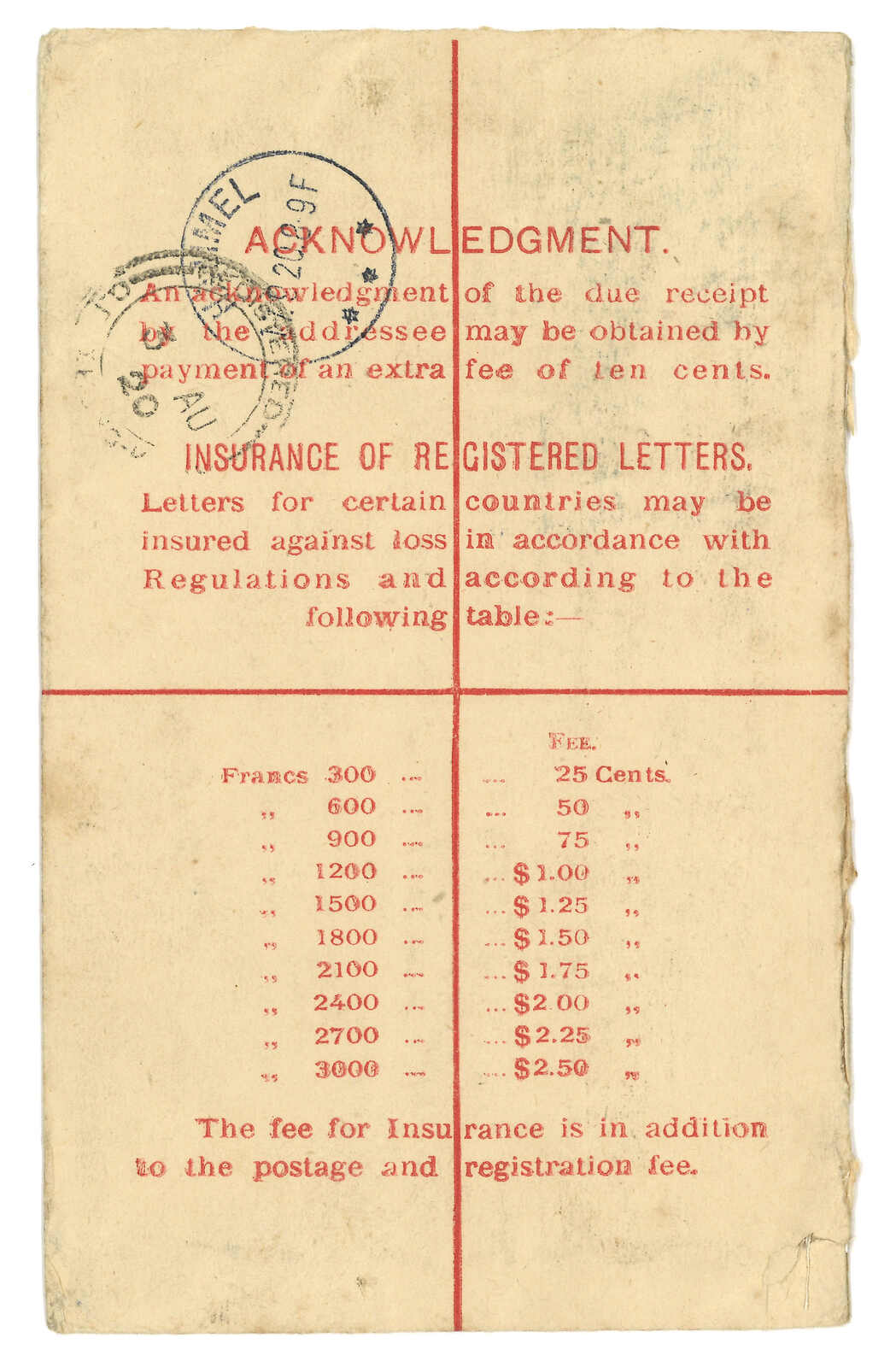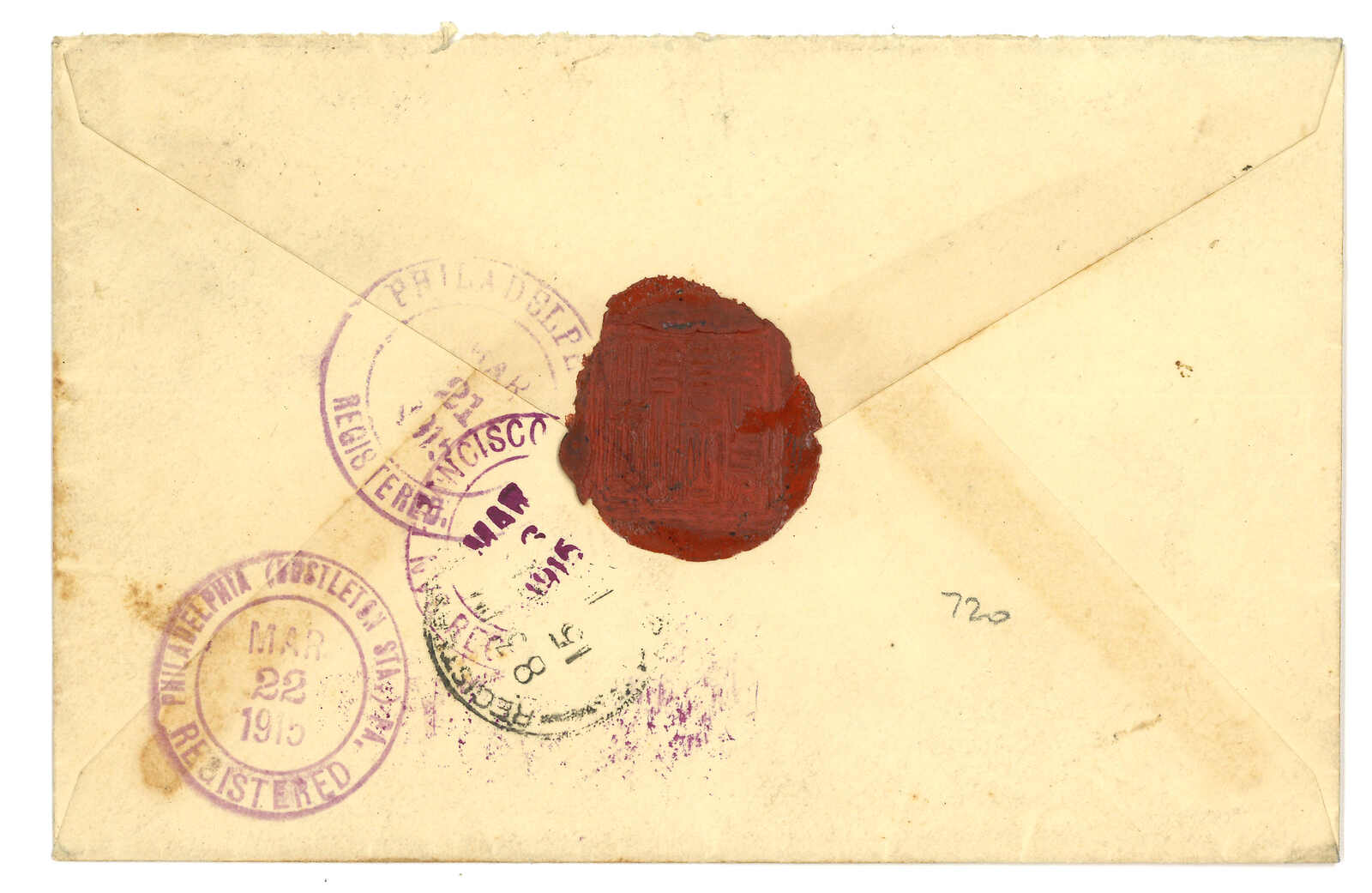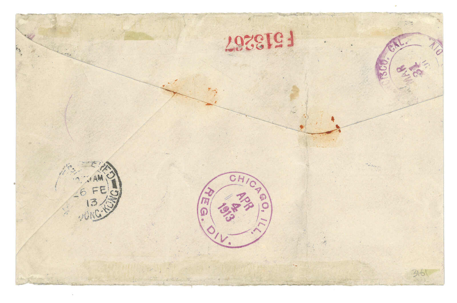 Arrived Chicago (4 Apr). Earliest example of 2nd type registered mark.
