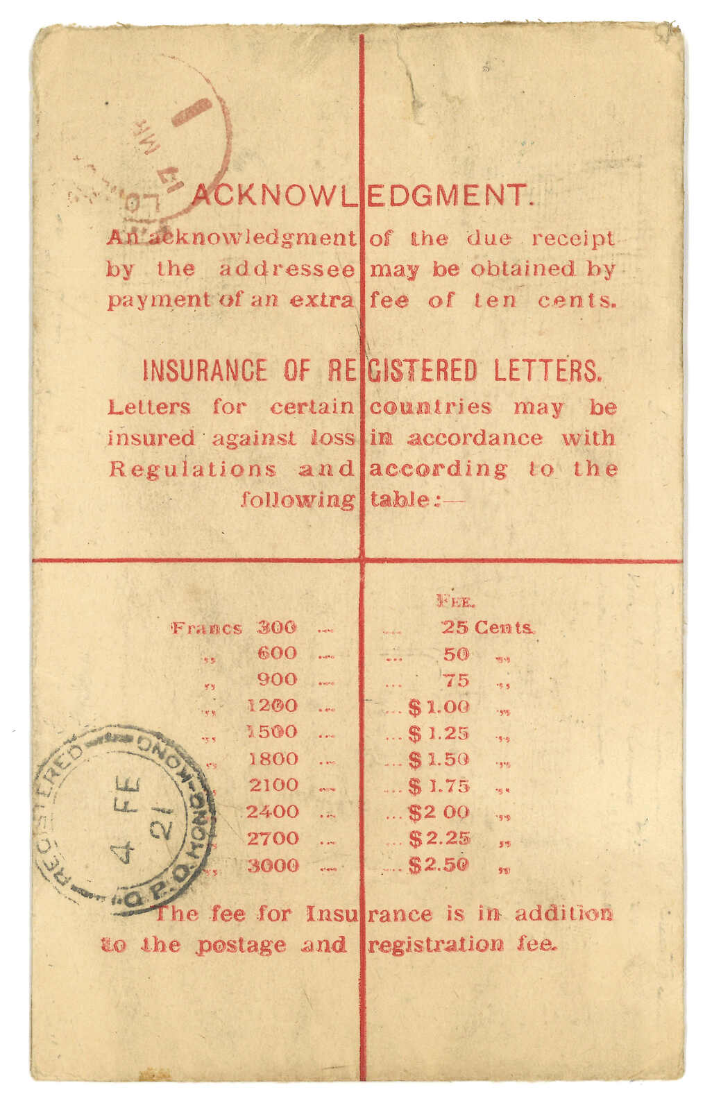 B.P.O.”掛號章。8.3經香港。R7型掛號章記錄中僅見五例。而I型日戳亦較少見於B字。(Image 1)