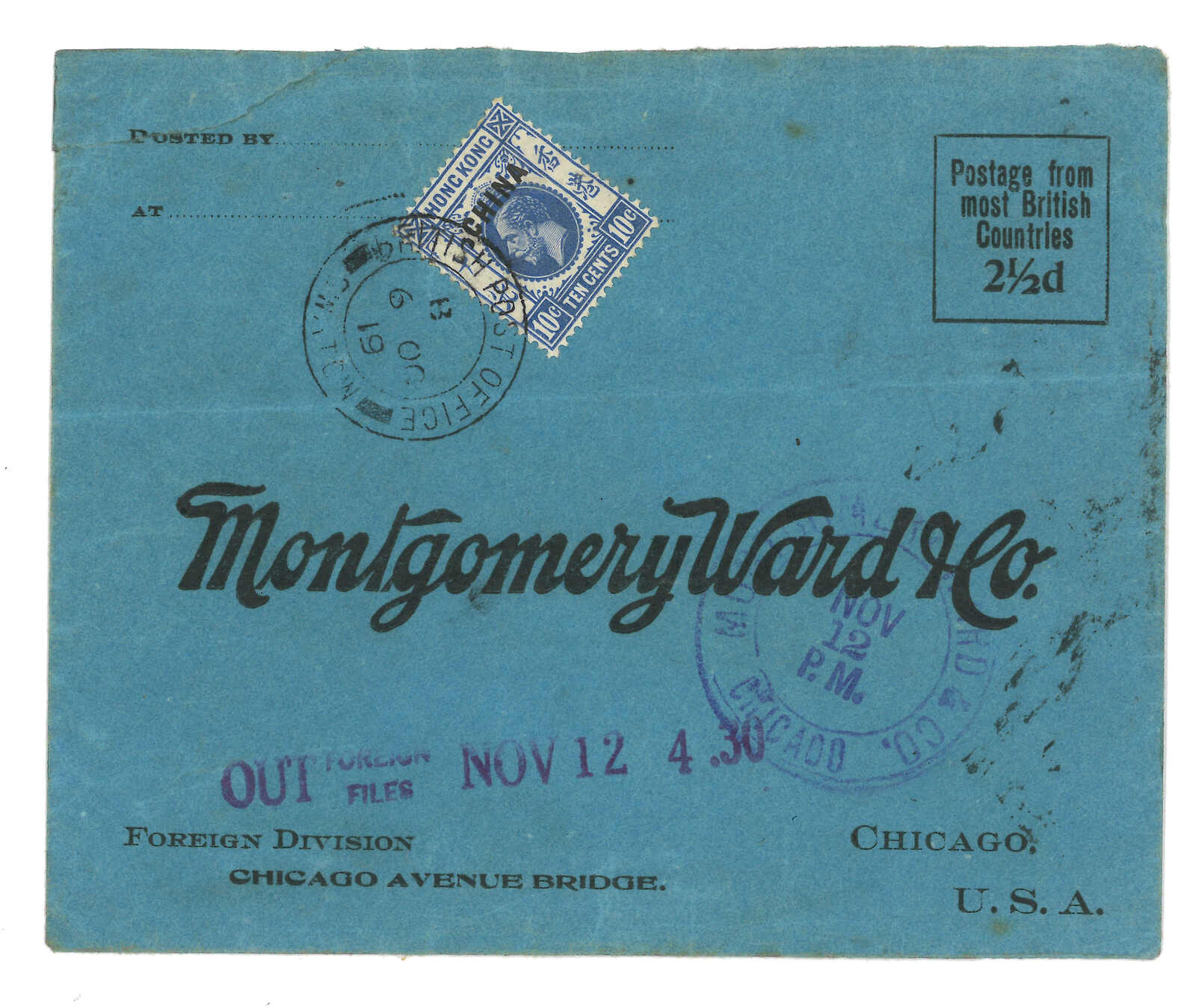 B.P.O.”長方形掛號章。2.4經香港。I型日戳亦較少見於B字。(Image 1)