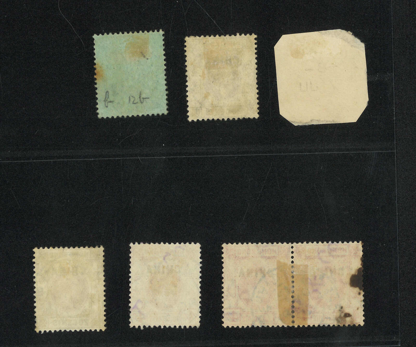 一組1900年汕頭英局Webb E型星號日戳集藏,包含兩枚香港維多利亞女皇像舊票及一件寄香港郵資片,日