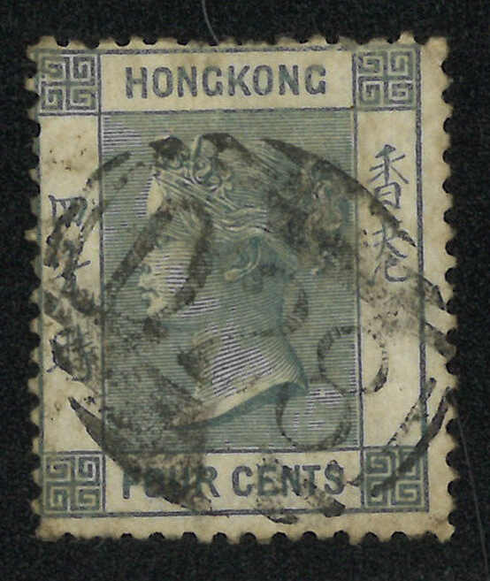 Hong Kong QV 4c used stamp, tied by scarce D28 obliterator. D28 obliterator is very scarce and no cover applied with D28 was recorded by Webb which left used stamps the only way to acquire this cancellation.