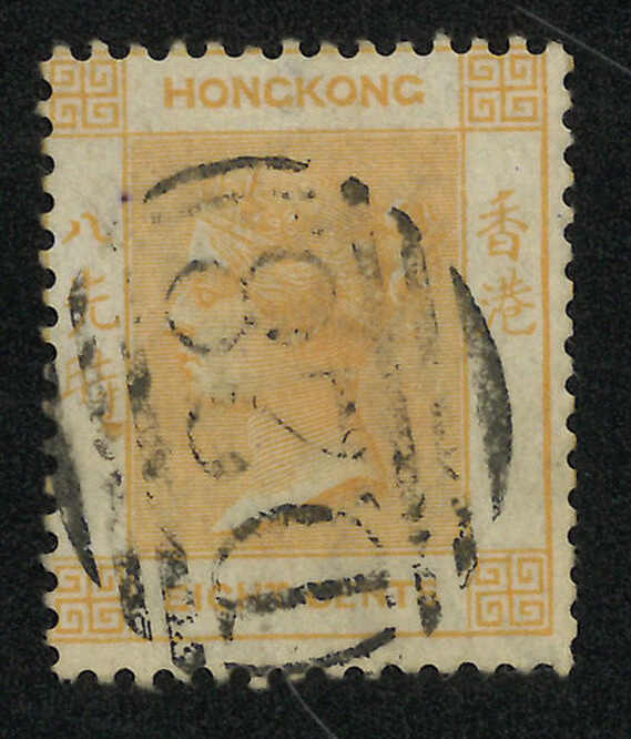 Hong Kong QV 8c used stamp, tied by scarce D28 obliterator. D28 obliterator is very scarce and no cover applied with D28 was recorded by Webb which left used stamps the only way to acquire this cancellation.