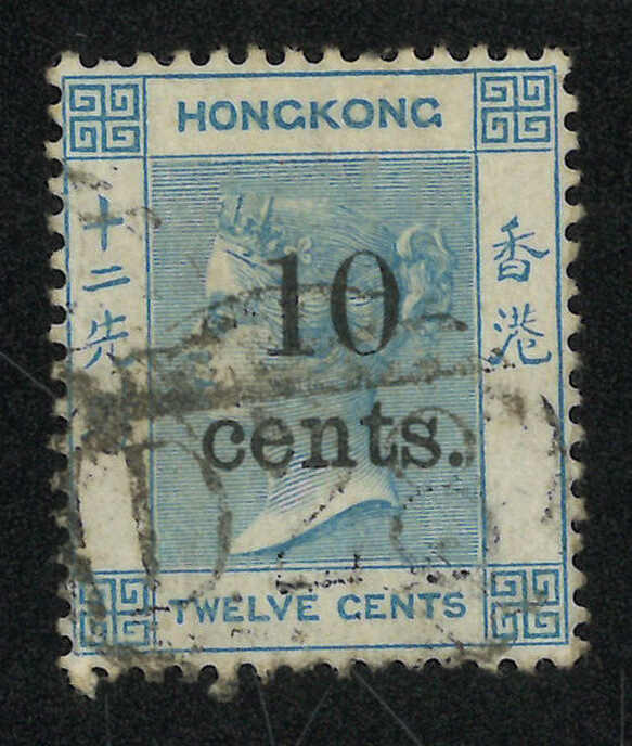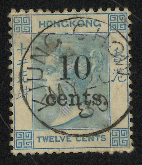 香港維多利亞女皇像改值10仙蓋12仙舊票,銷珍罕之瓊州英局Webb B型日戳。瓊州B型日戳極為難得,Webb記錄僅見十三枚舊票,而未見任何存世信封記錄,故舊票成了入手的唯一途徑。(Image 1)