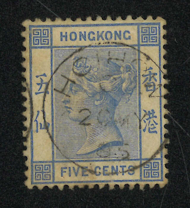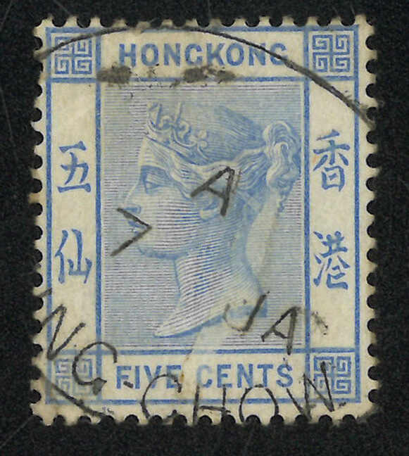 香港維多利亞女皇像5仙舊票,銷珍罕之瓊州英局Webb Cii型A字橢圓日戳。Webb指此戳比B型日戳更為少見,亦未見任何存世信封記錄,故舊票成了入手的唯一途徑。(Image 1)