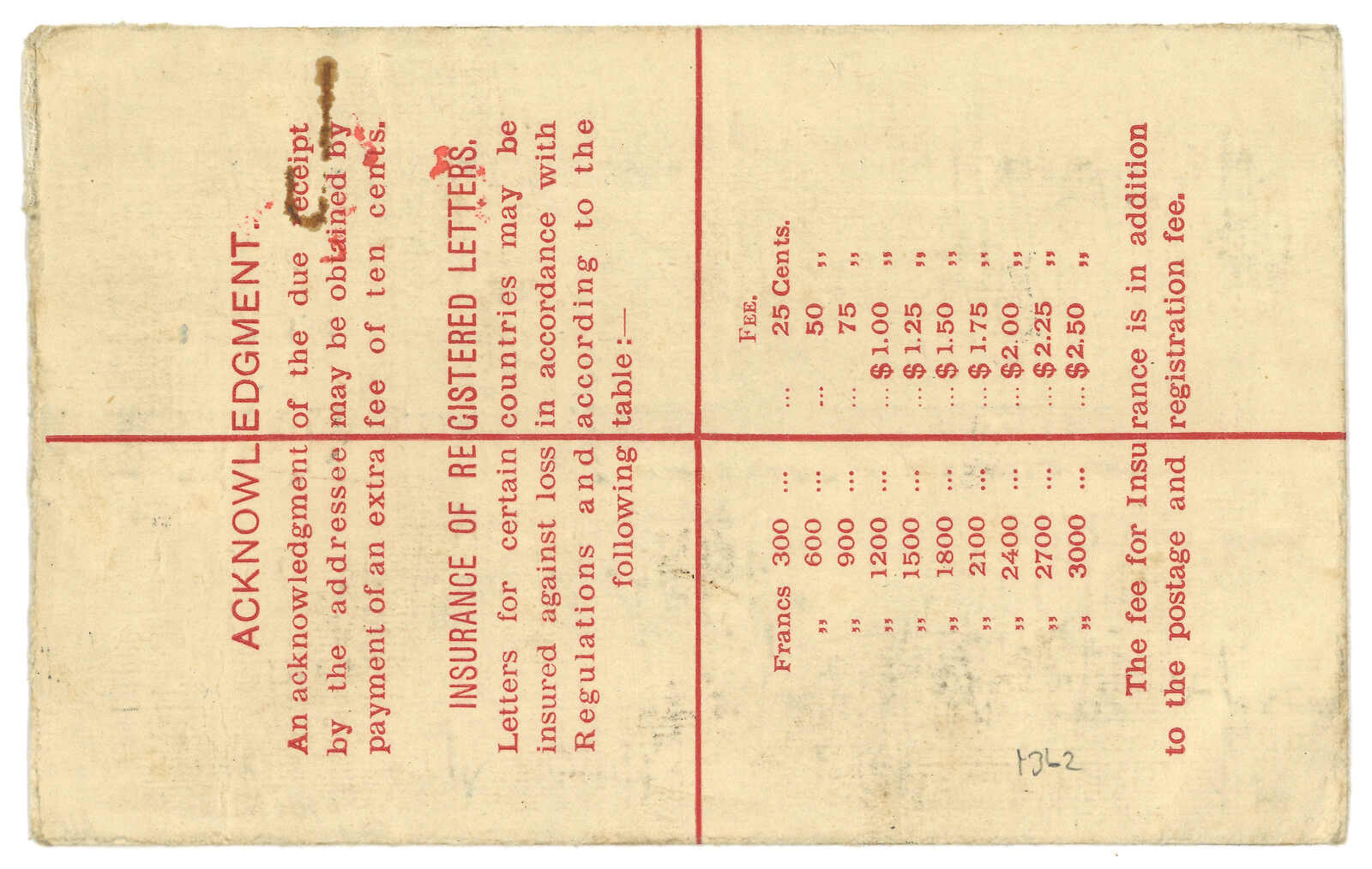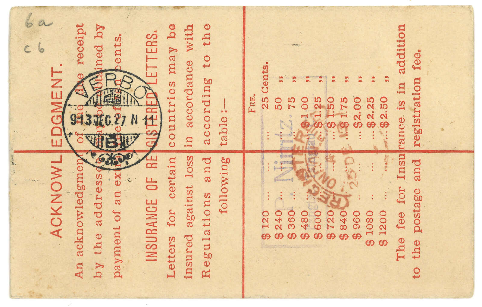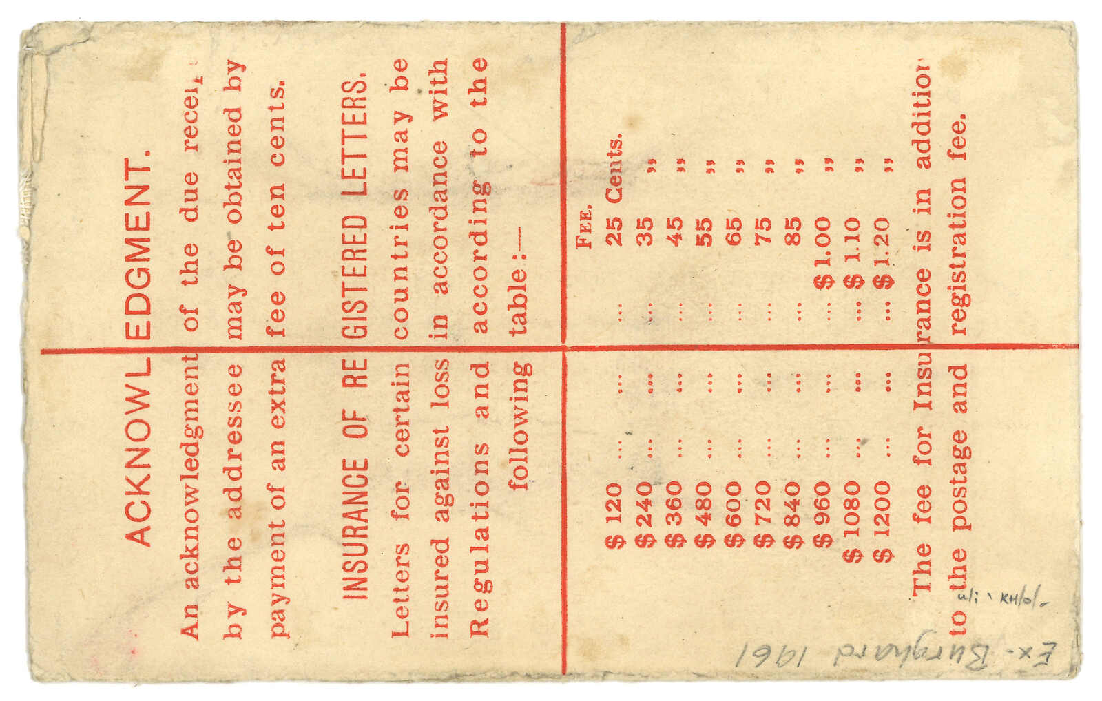 Arrived Peking (8 Feb). One of the 5 examples of type R2 registered mark.