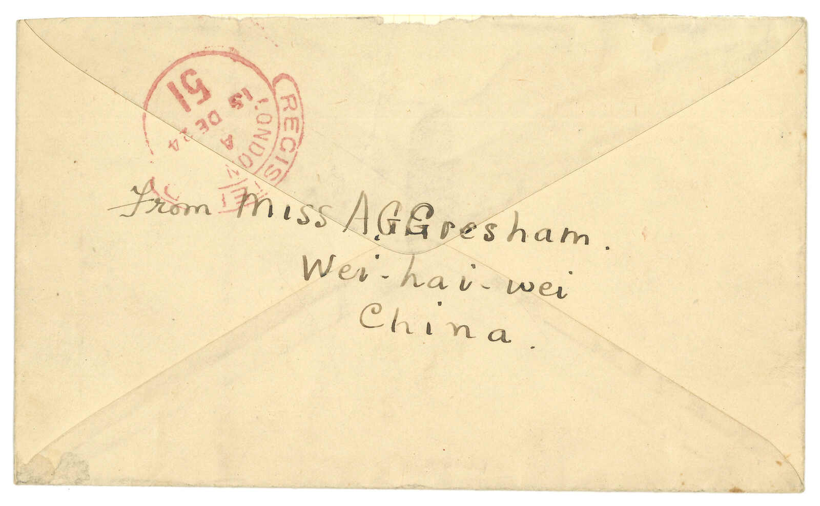 Arrived Colchester (8 Jan). Dated just 3 days before the closure of Chefoo BPO (30 Nov). Ex- D'Almada.