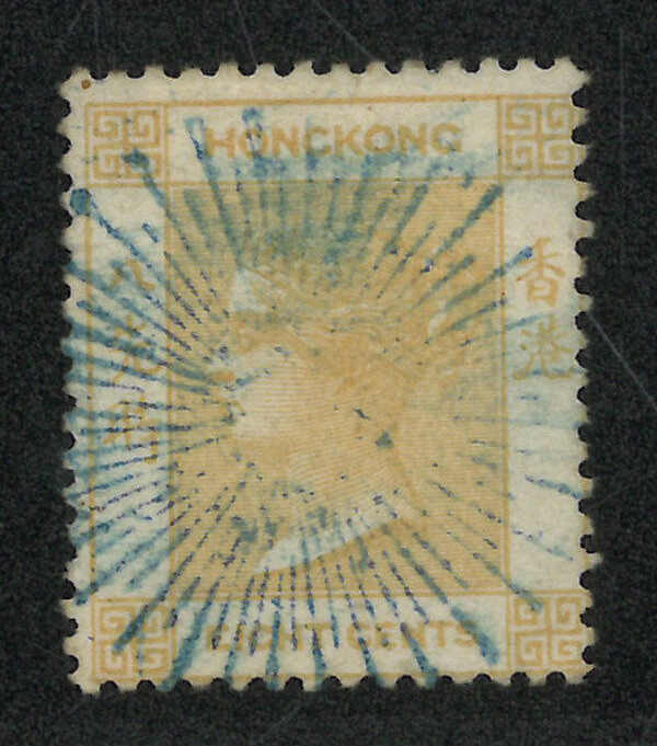 3030 o image1862 Hong Kong QV 1st issue unwmk 8c (Yang 2), tied by scarce Shanghai BPO Sunburst obliterator. Hinged.