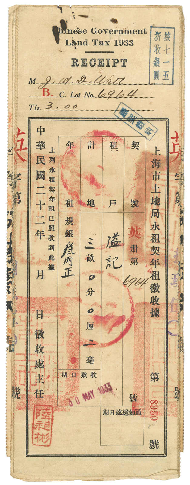 3005 cover imageA group of 8 land deed and receipts of land tax of Shanghai British settlement during Qing and ROC period. Interesting.