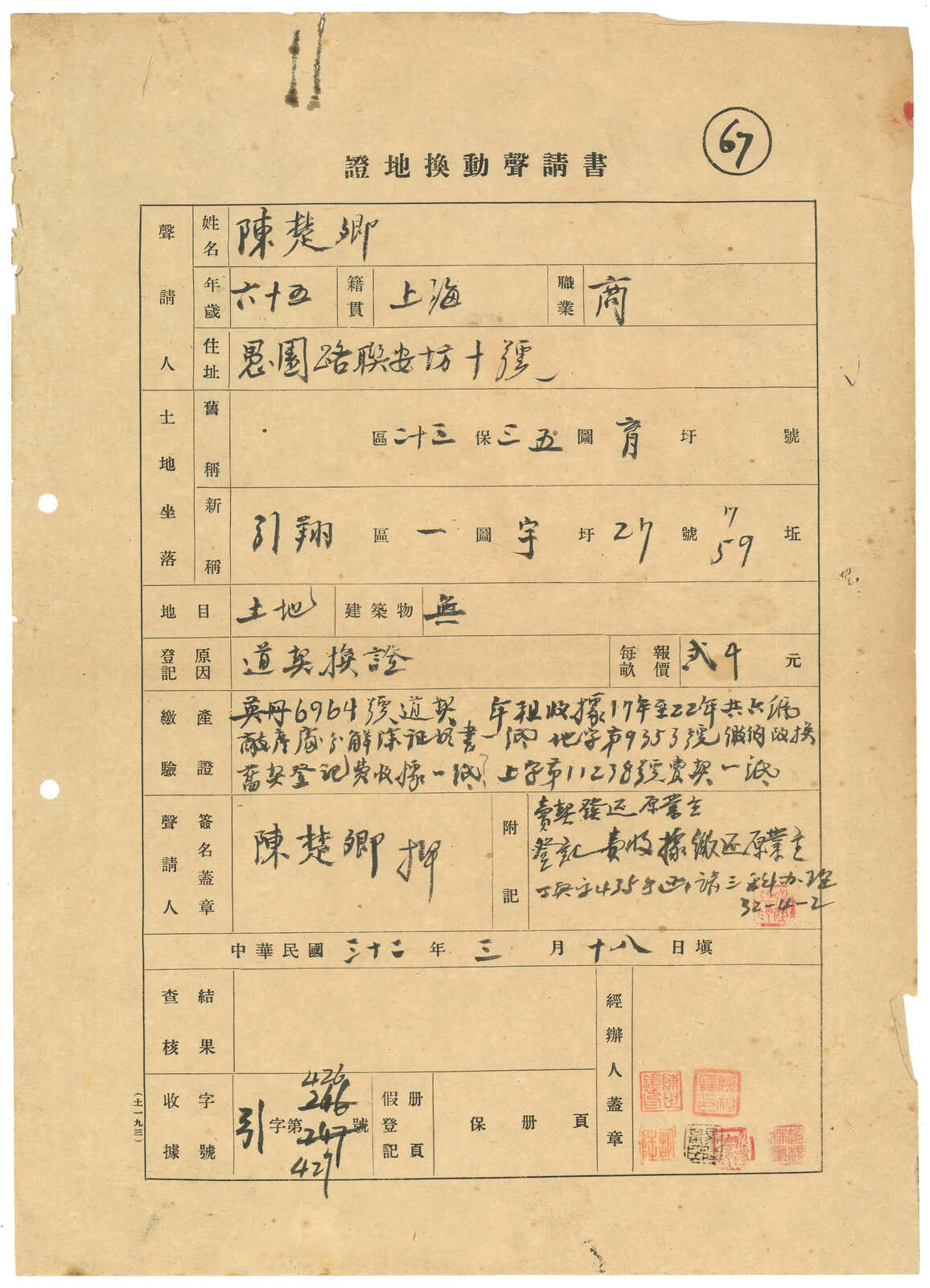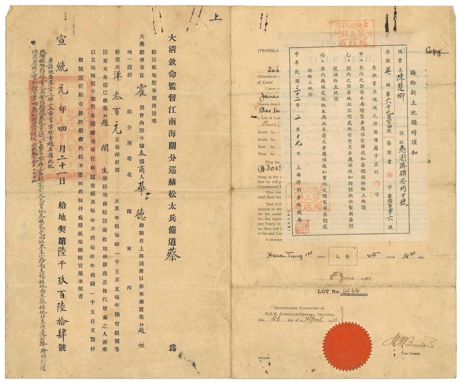 一組八份清末民初於上海英租界之地契及地稅收據,十分有趣。(Image 1) (Image 2) (Image 3) (Image 4)