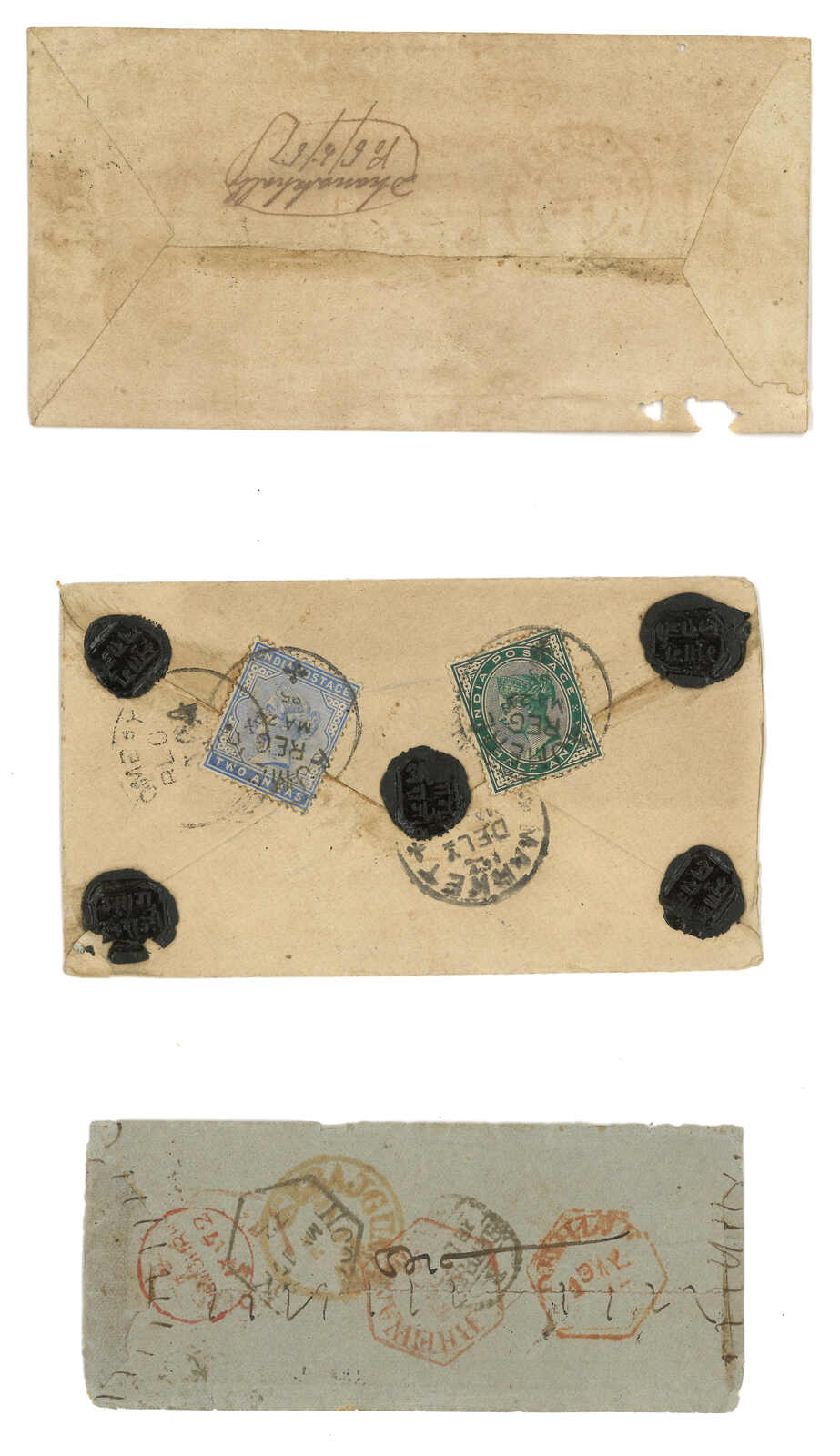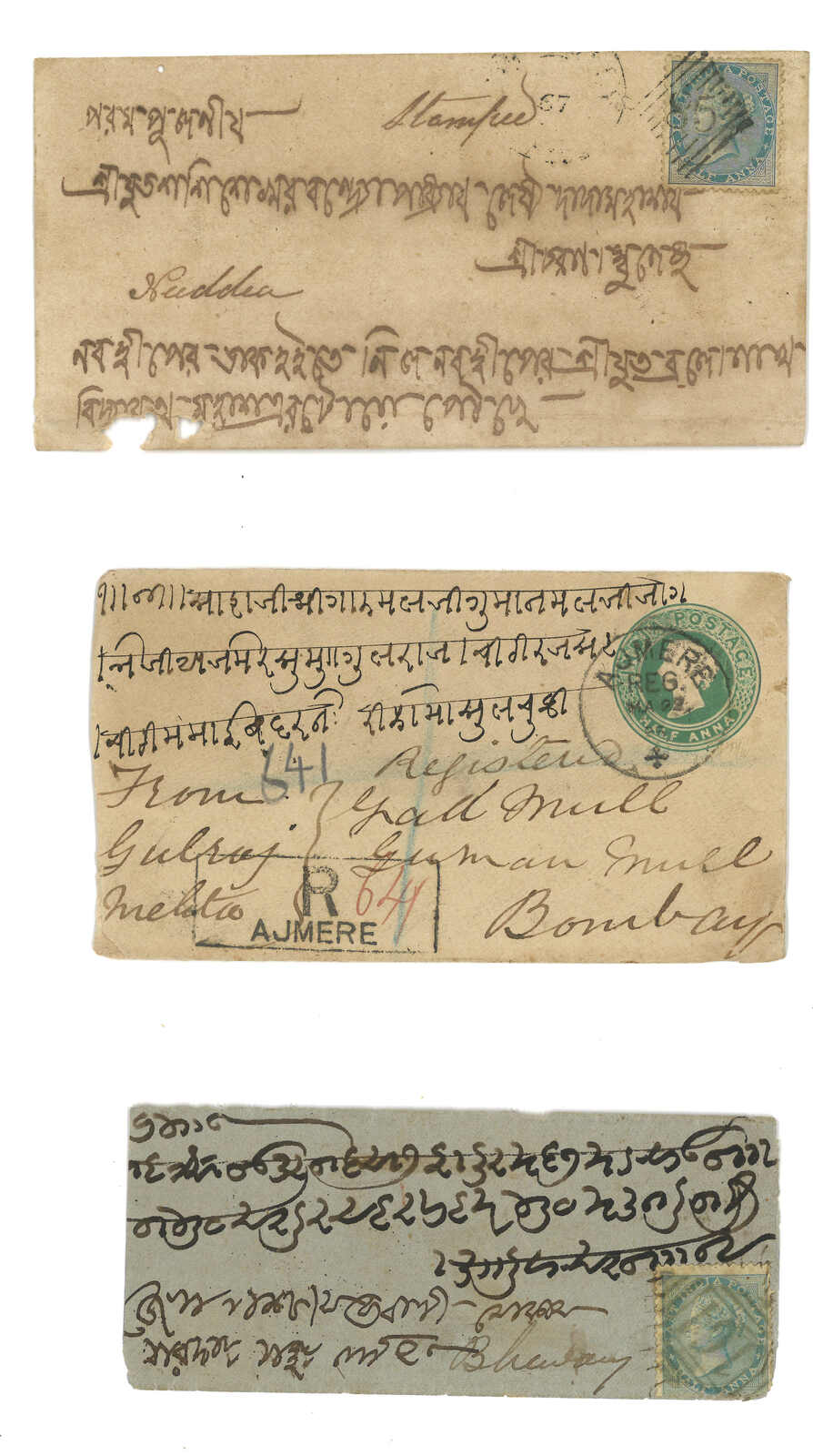 817 cover image1880s a group of 4 Indian covers and stationery covers, f.w. QV single, tied by obliterator or cds.