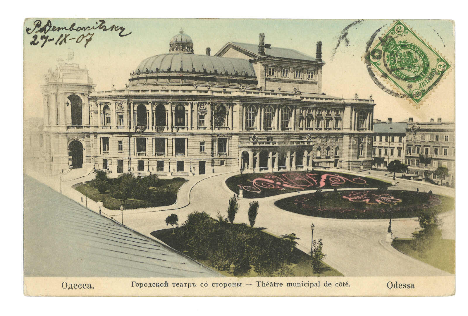 1907.9.15 敖德薩寄軍糧城。圖片明信片,貼軍徽圖2戈比,銷殺手戳,另鈐敖德薩始發日戳。鈐T章及寬城子“不足”日文欠資章。經日本客郵局。(Image 1) (Image 2)