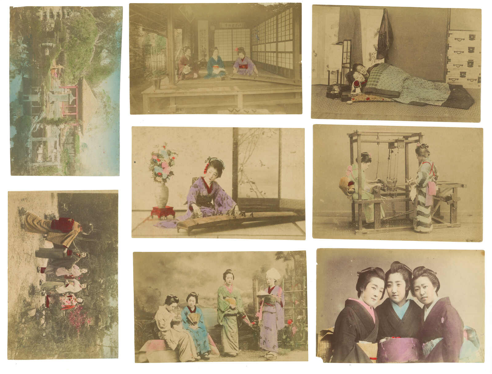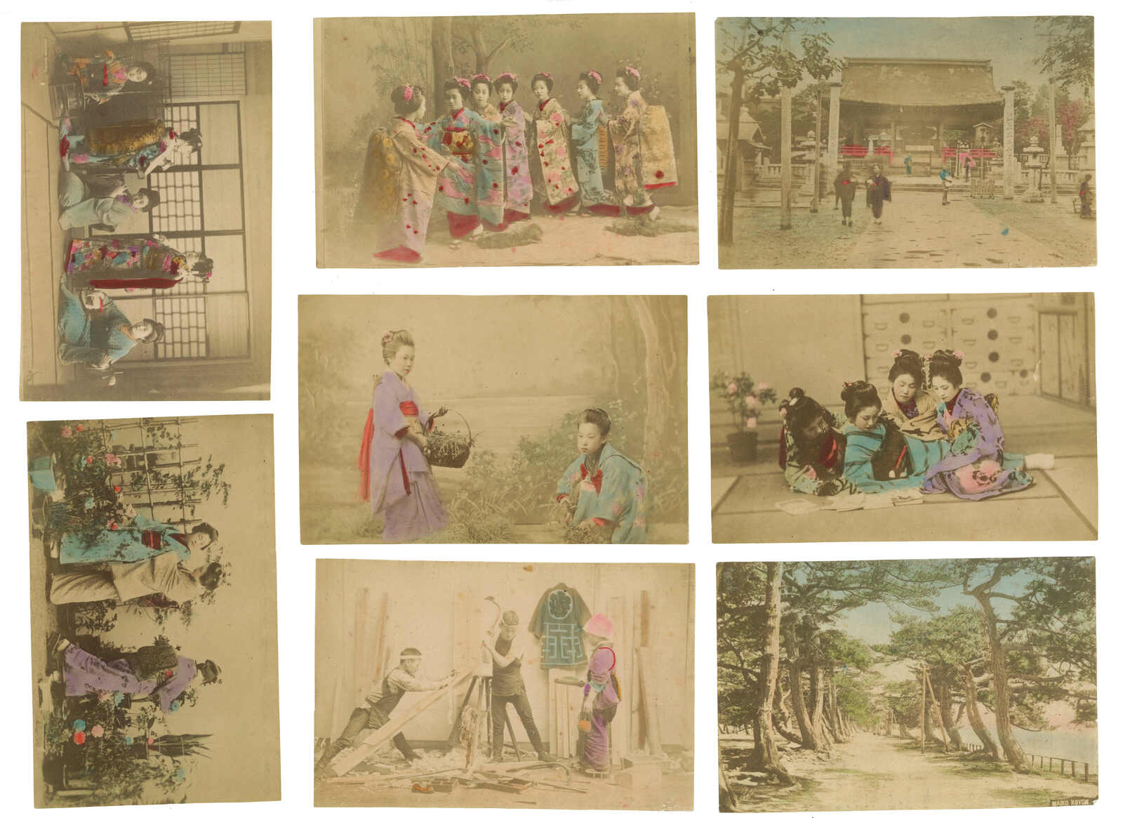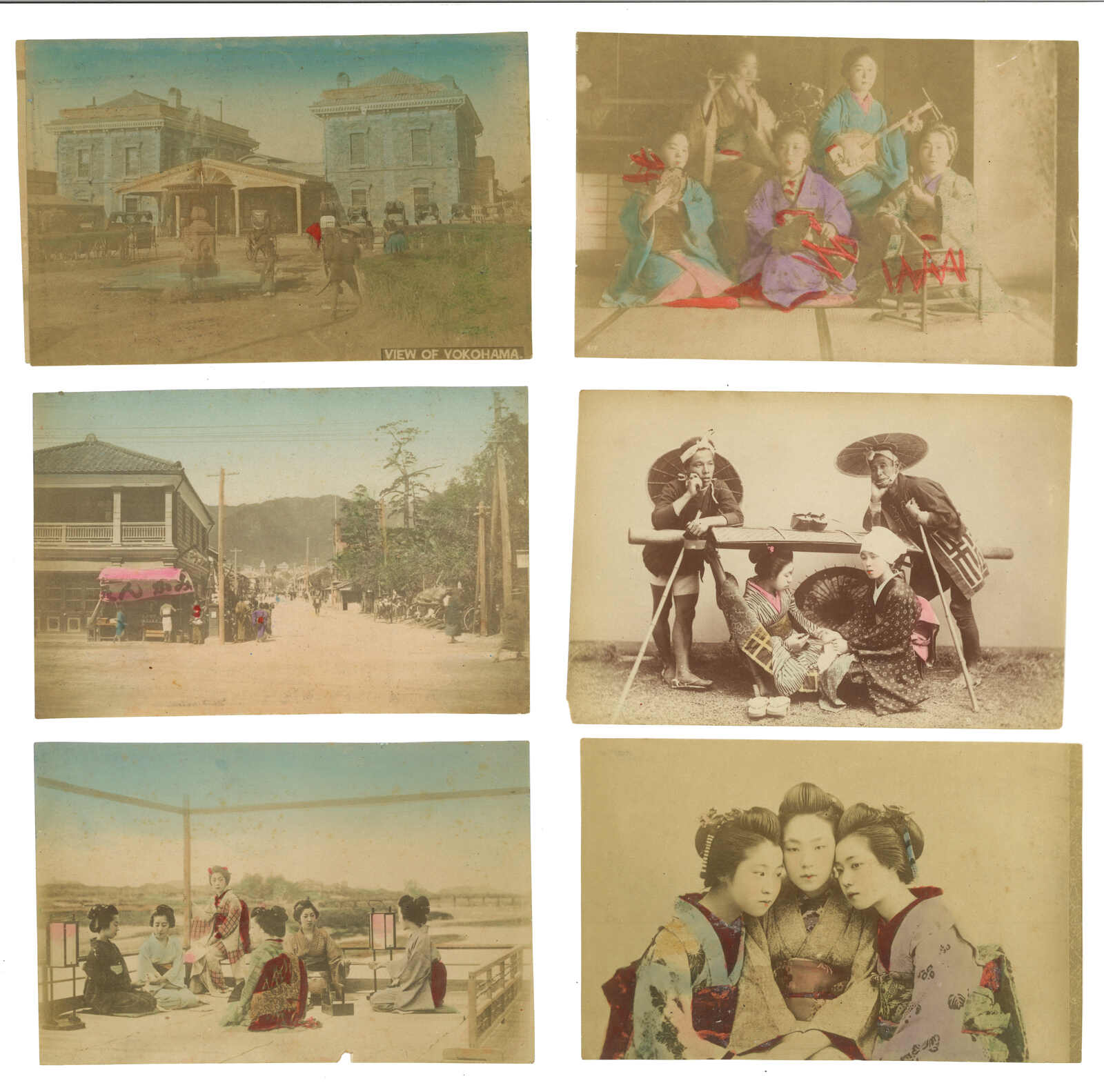 2501 imageA group of 29 Japanese albumen silver print photos, mostly showing ladies while some with city landscapes.