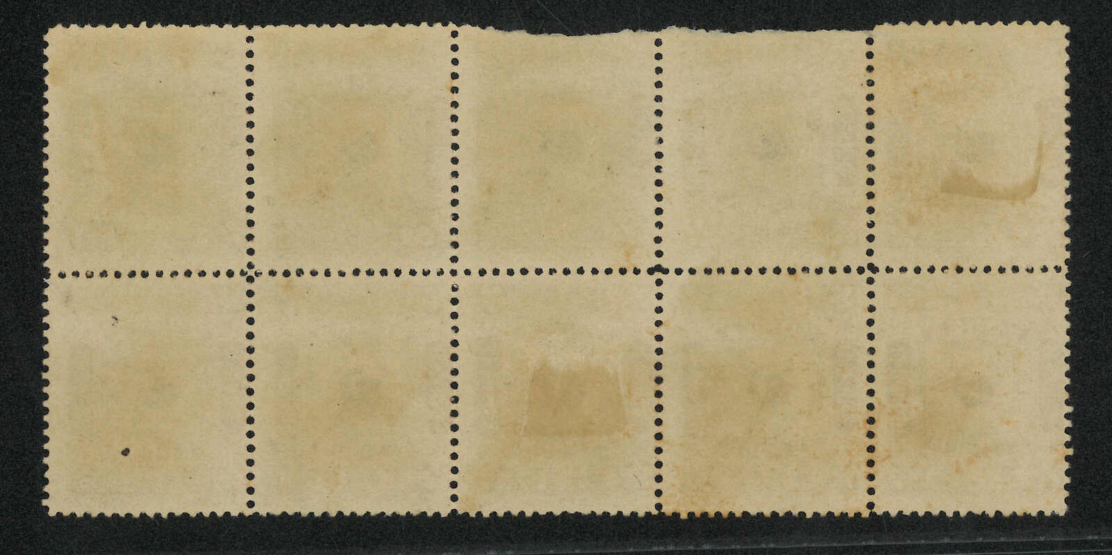 1901至1903年太極圖金屬加蓋“二戔”於2錢5分十方連(KPDA 29),背貼。頂邊短齒。(Image 1)