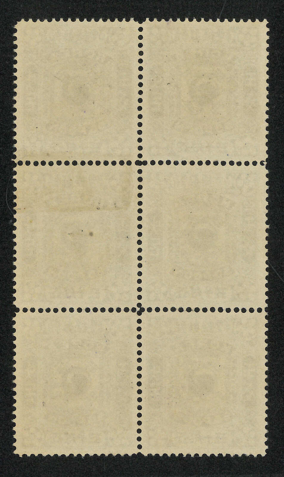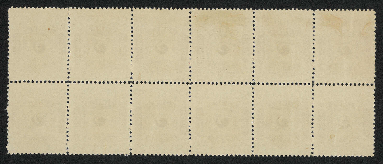 1901至1903年太極圖金屬加蓋“三戔”於5錢六方連(KPDA 30),無貼。(Image