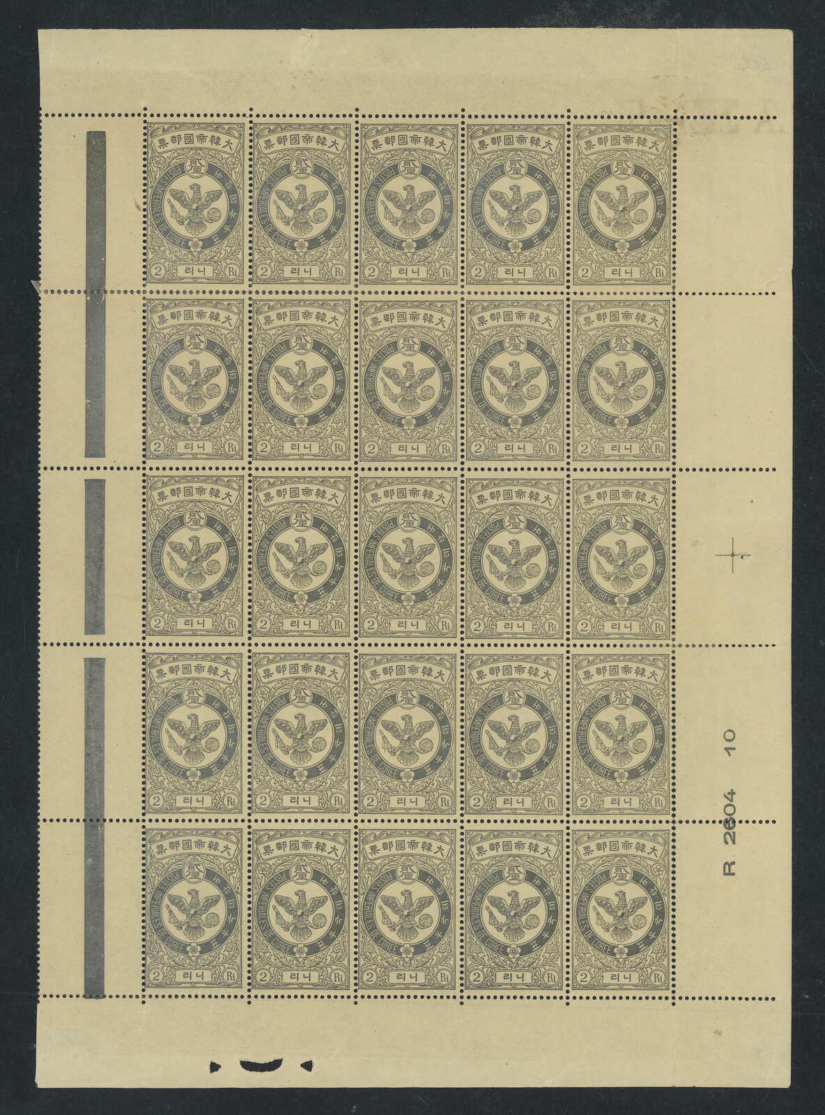 1901-1903 Taegeuk woodchop surch 2 Cheon on 25 Poon in block of 49 (KPDA 29B), MH.