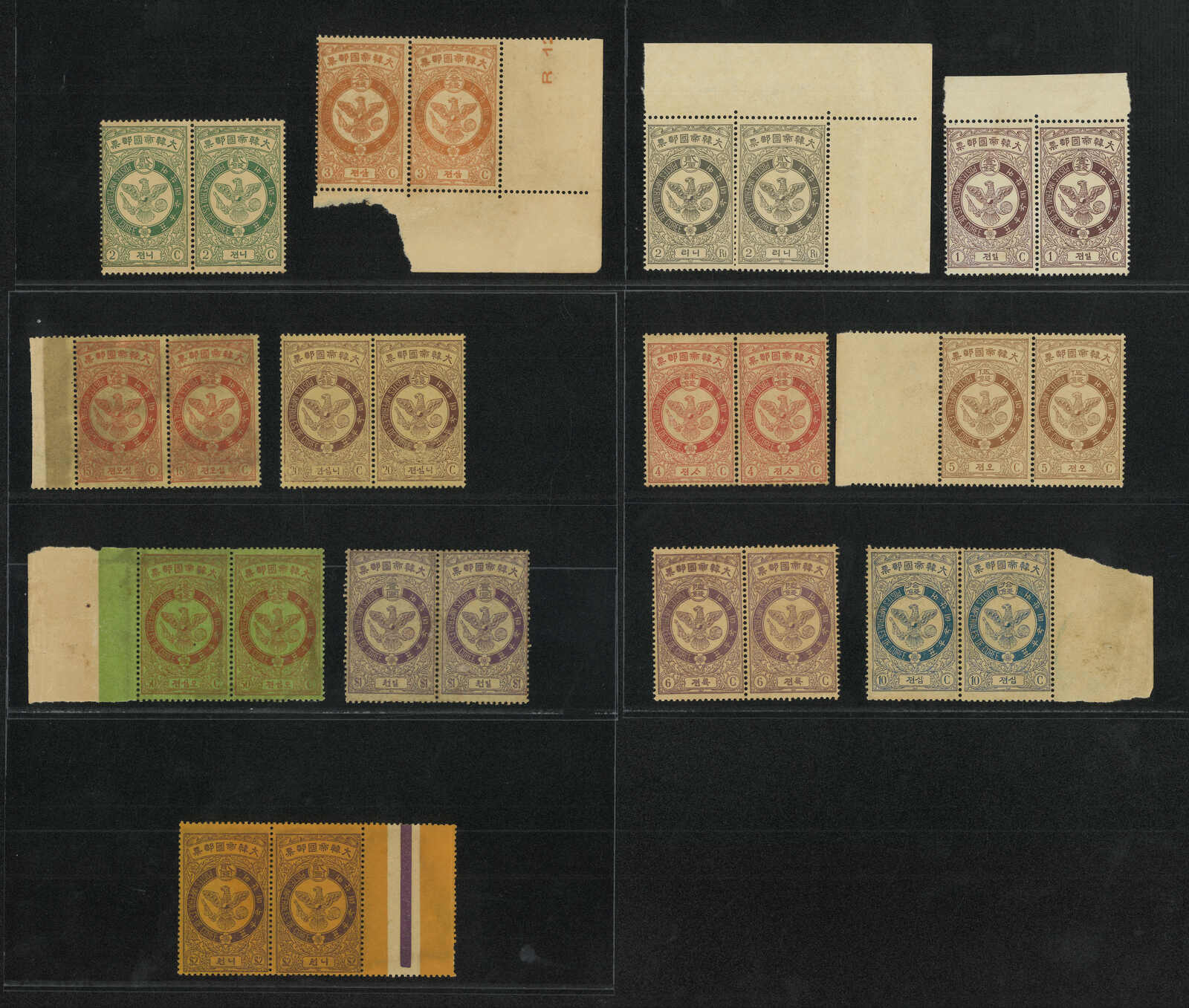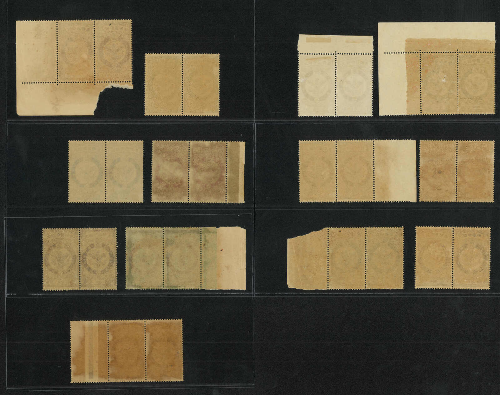 1903年鷹郵票橫雙連新全(KPDA32-44),部分帶邊紙或直角邊,背貼。(Image 1)